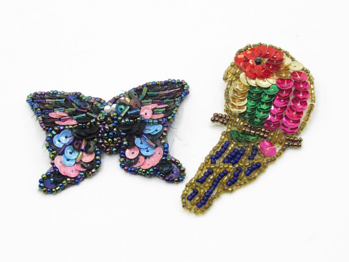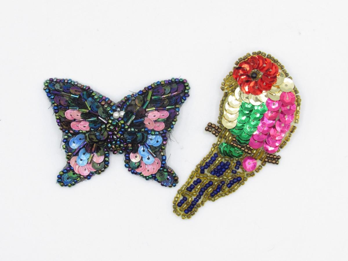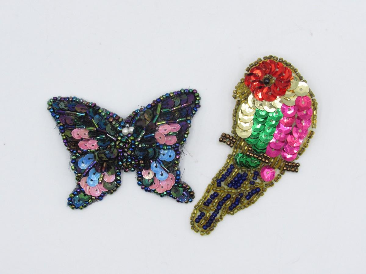 Retro Colorful Sequined Cloth Pins Handmade Wild Butterfly & Colorful Parrot