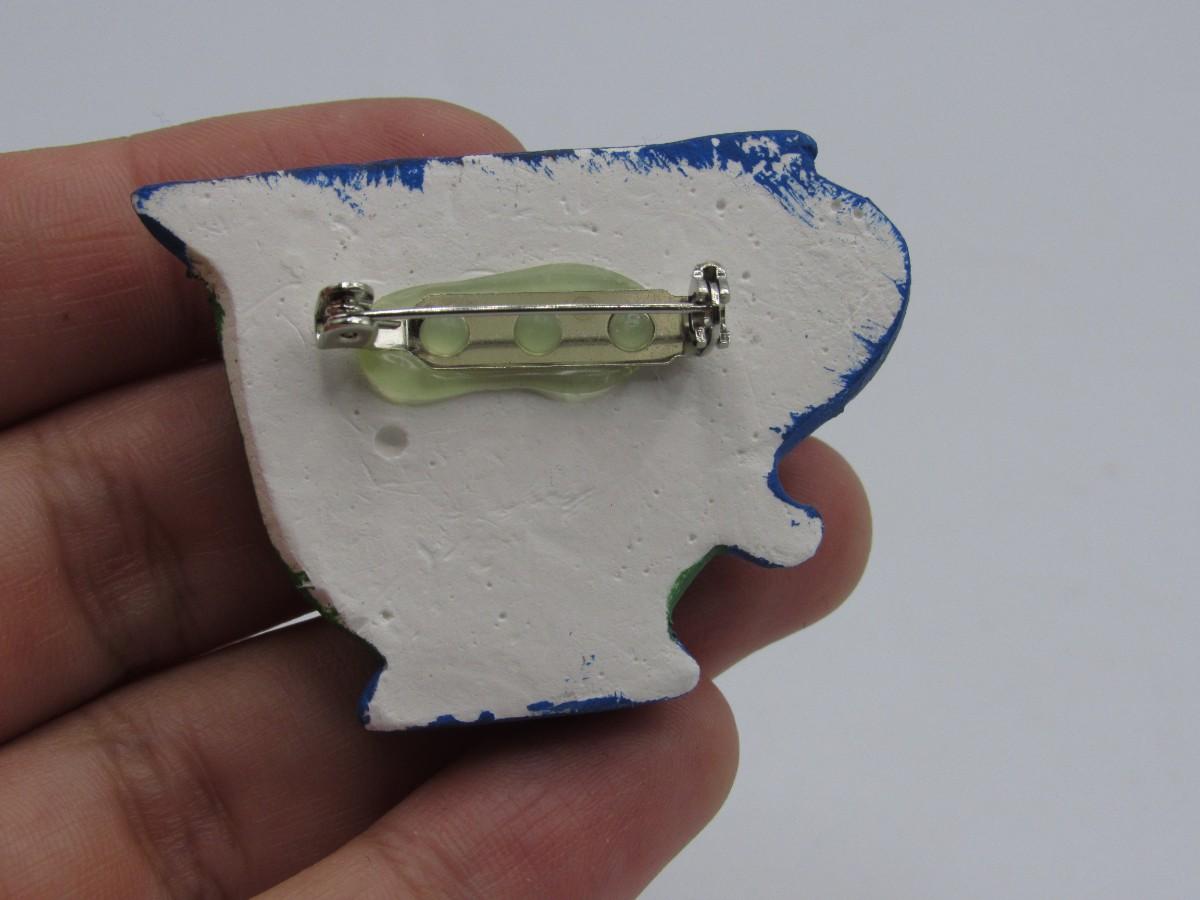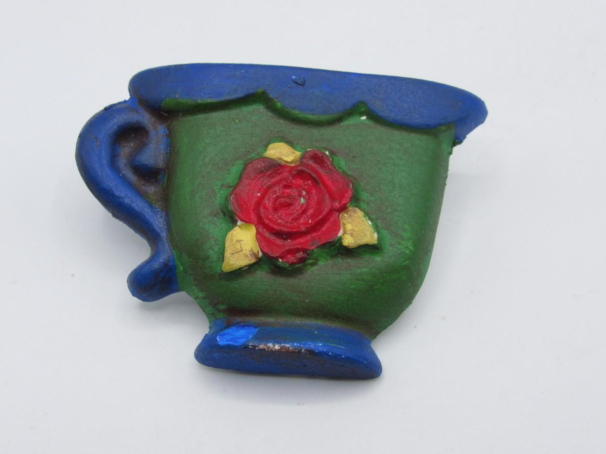 Painted Plastic Rose Motif Teacup Brooch Pin