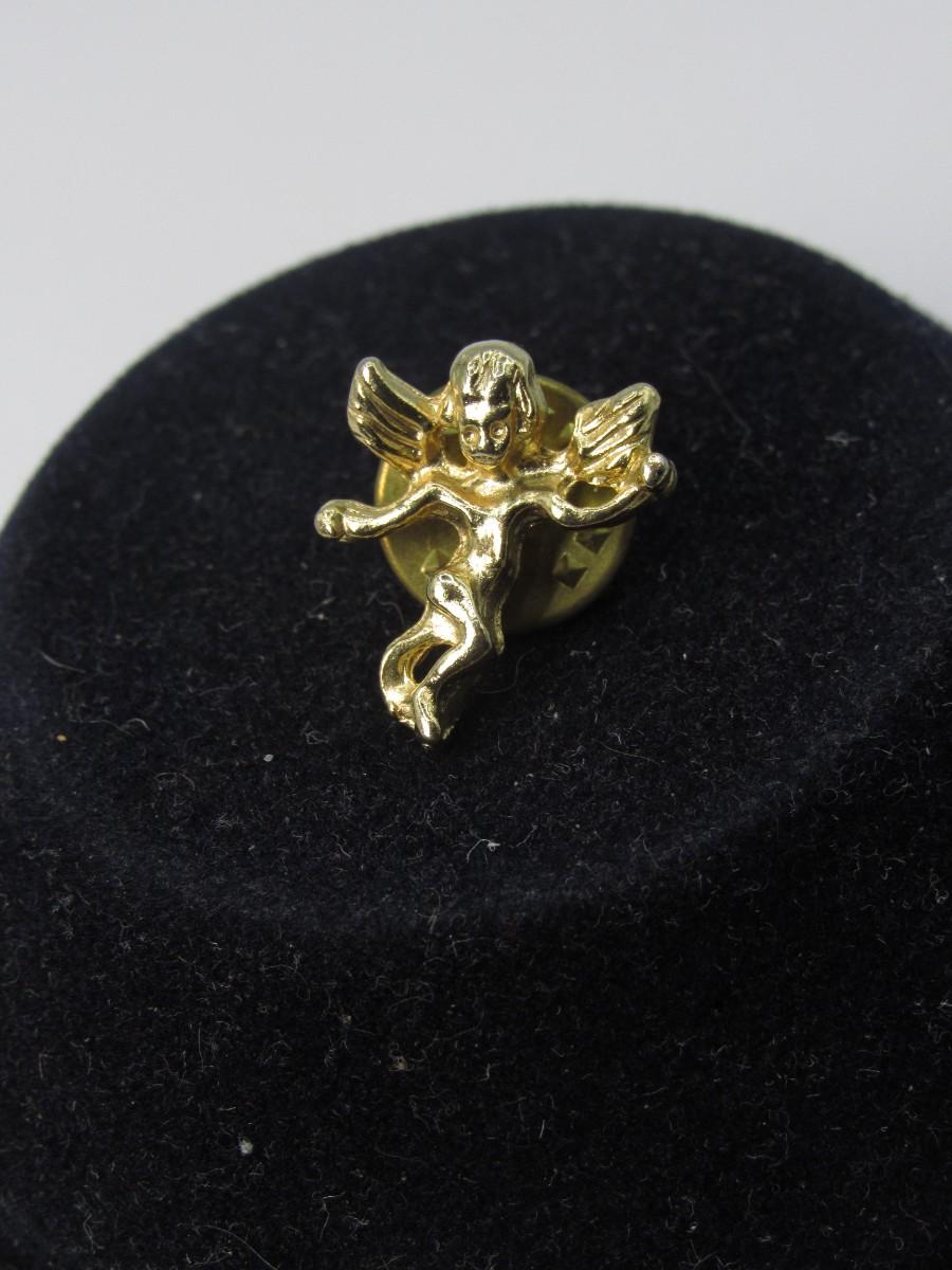 Small Gold Metal Flying Cherub Angel Lapel Button Pin