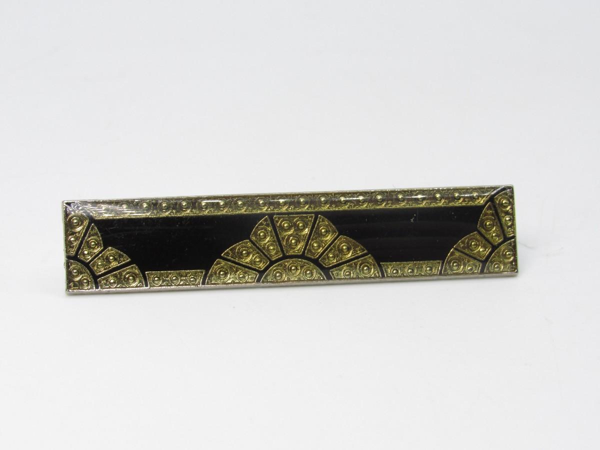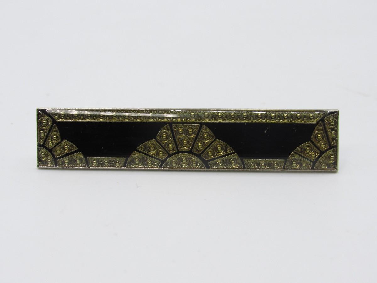 Pierre Bex Style Bar Pin or Brooch ““ Art Deco style ““ 1970s ““ French rectangular black gold
