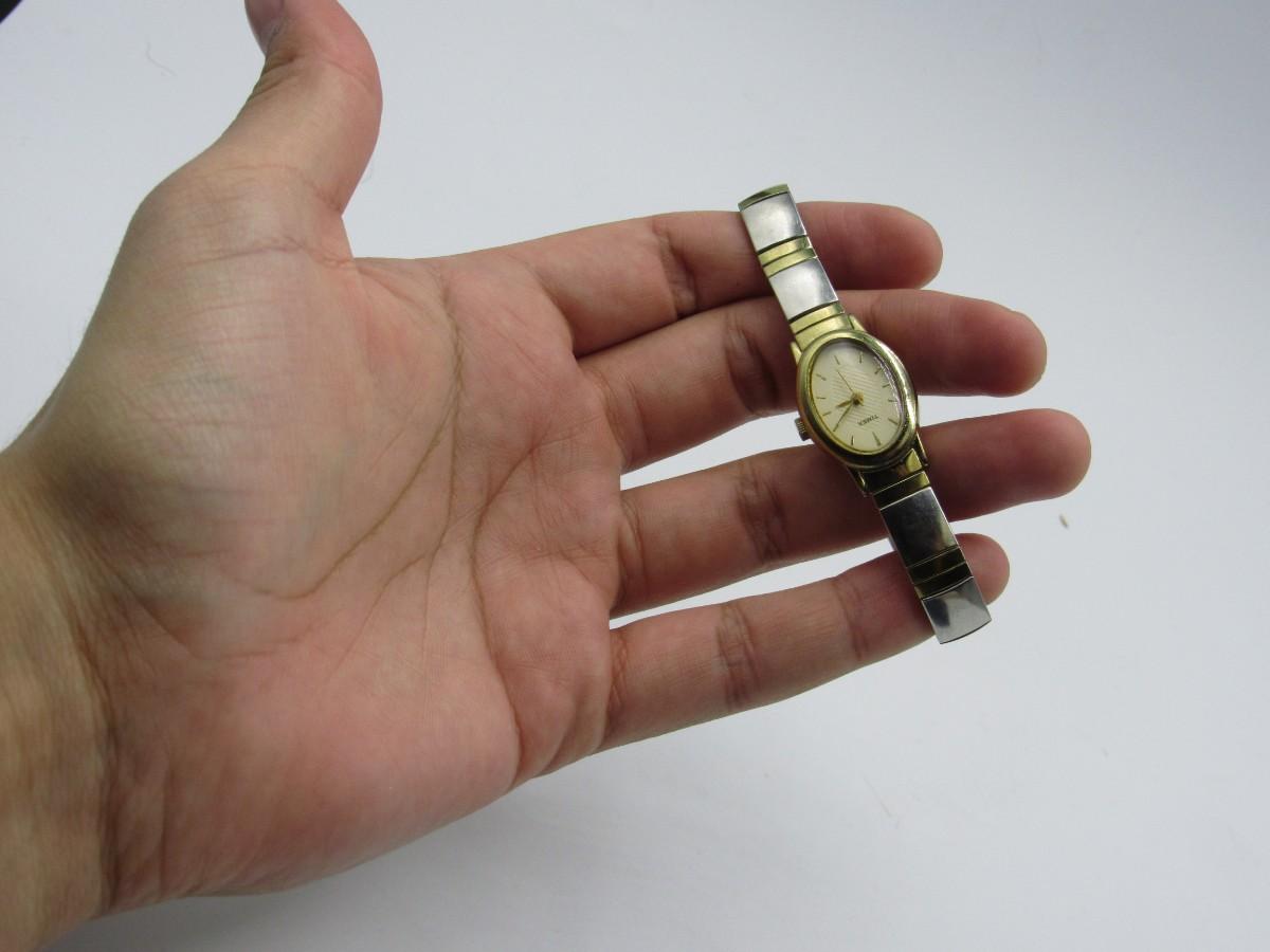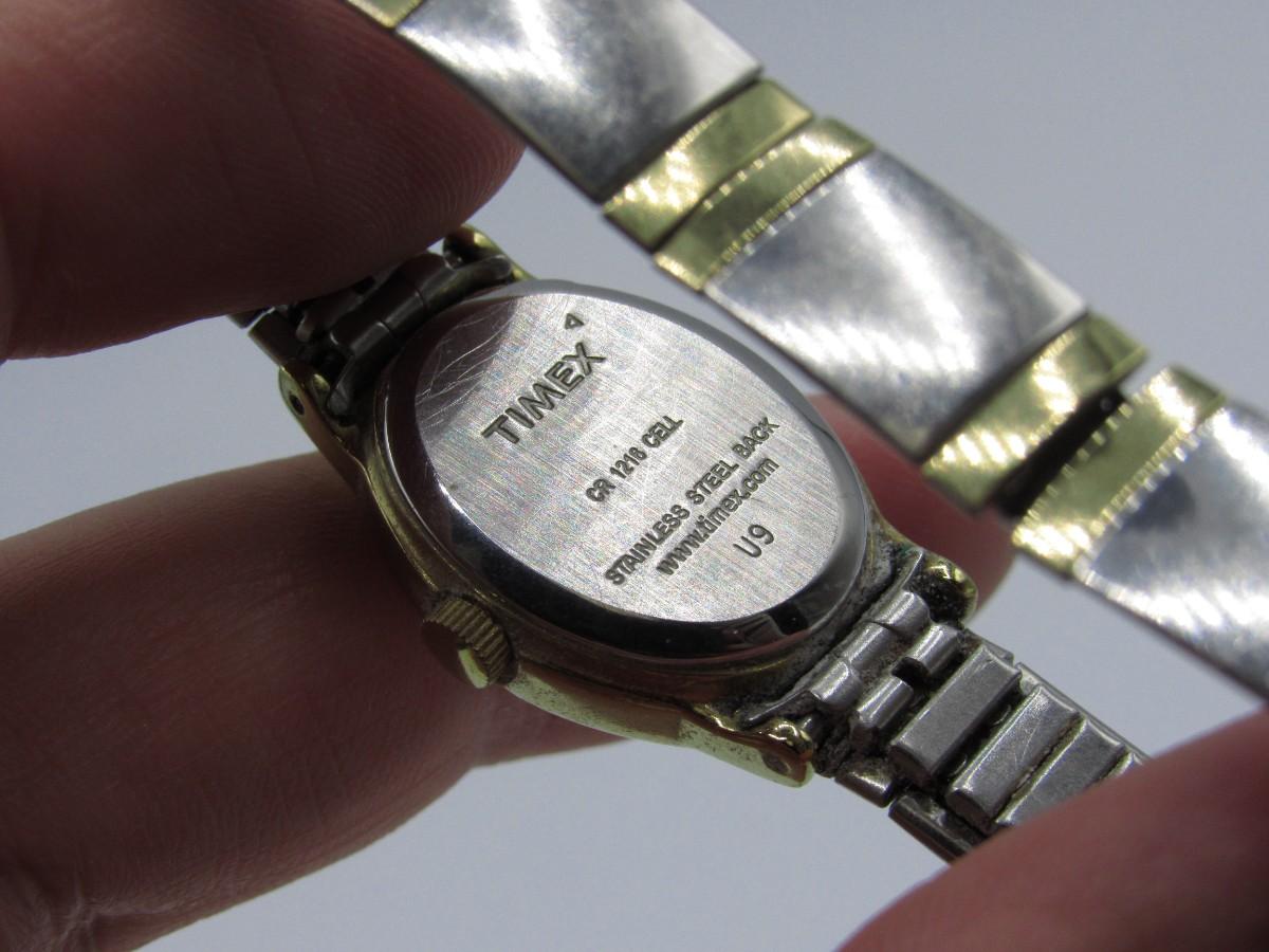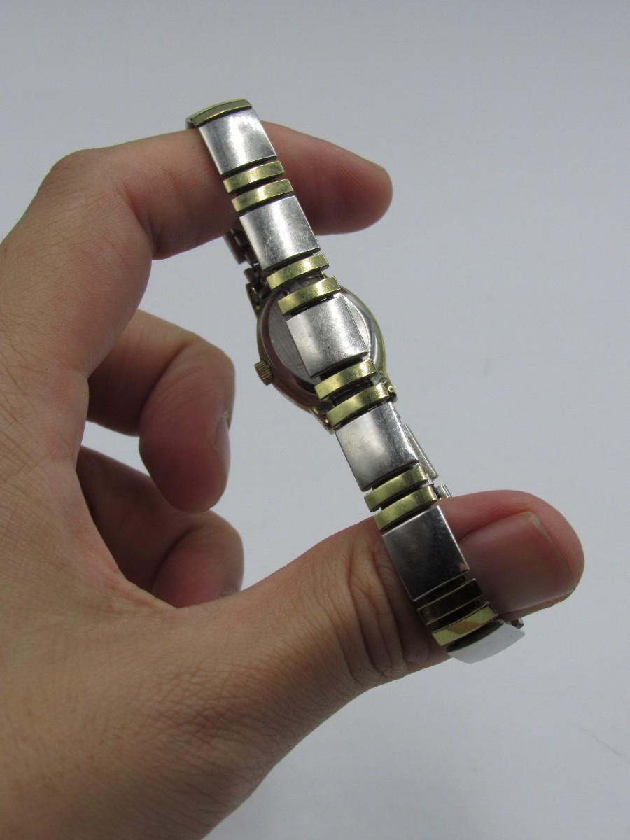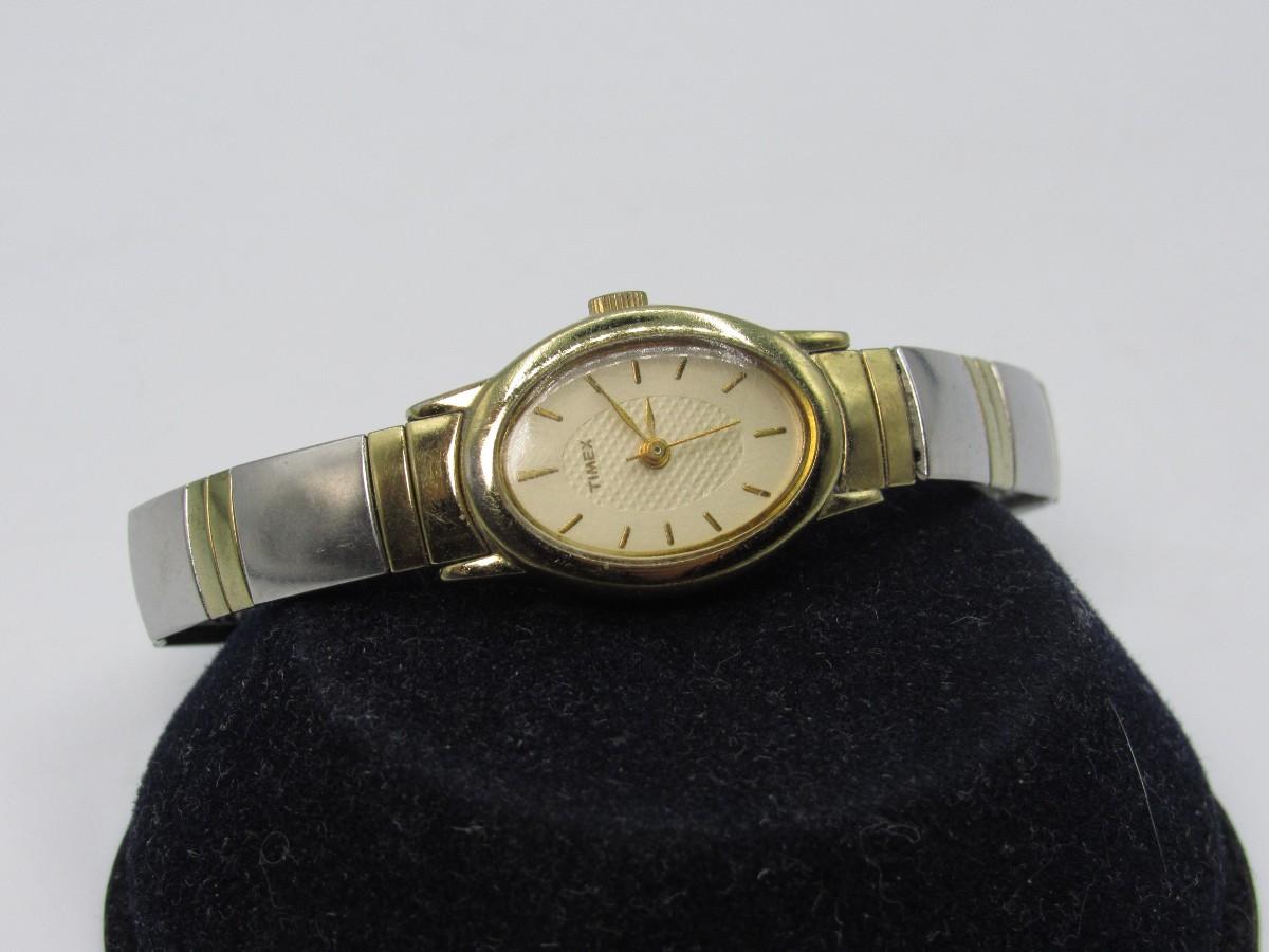 Timex Watch Silver Tone Dial Oval Case Gold Tone Two Toned Stretch Band