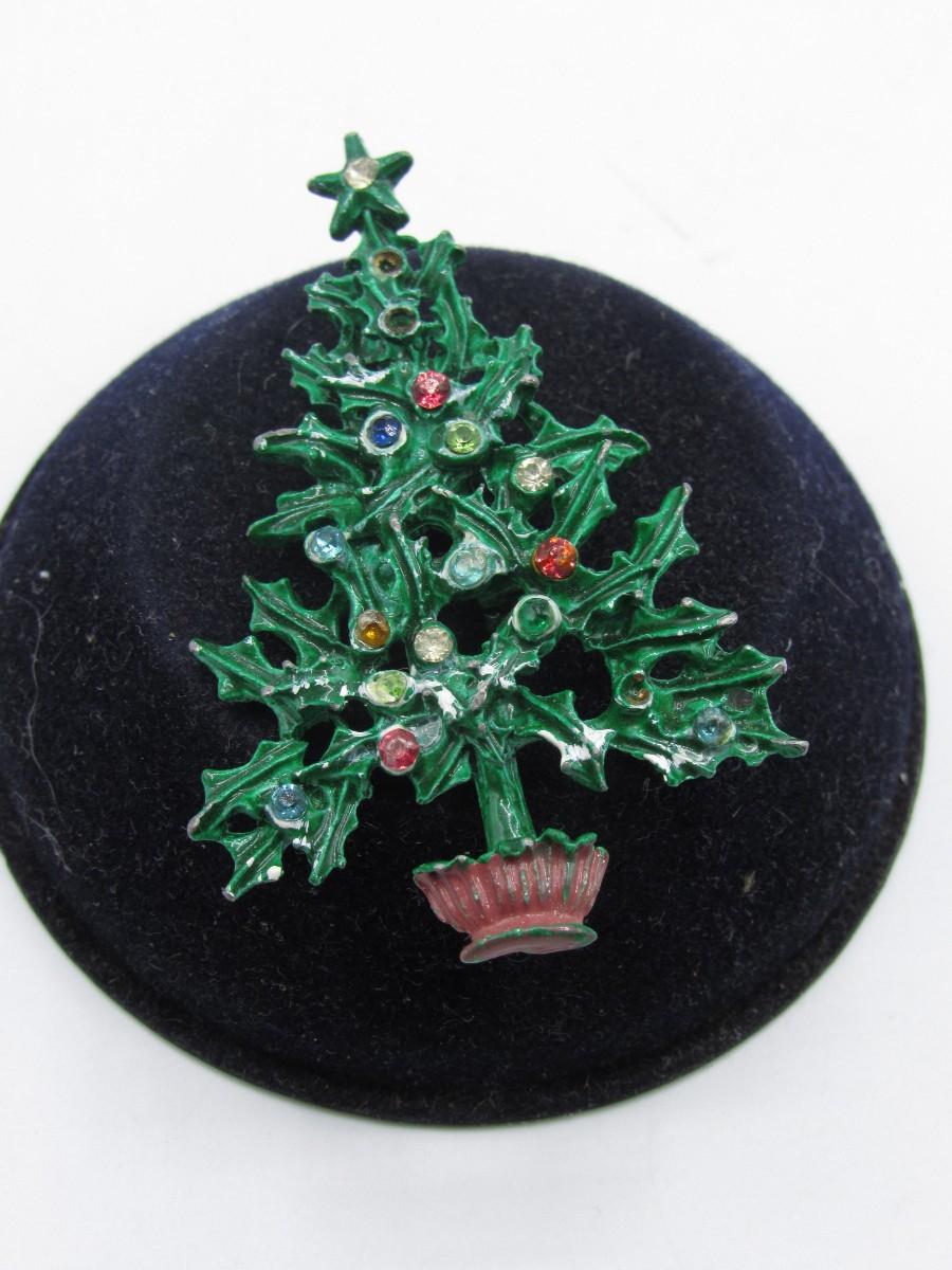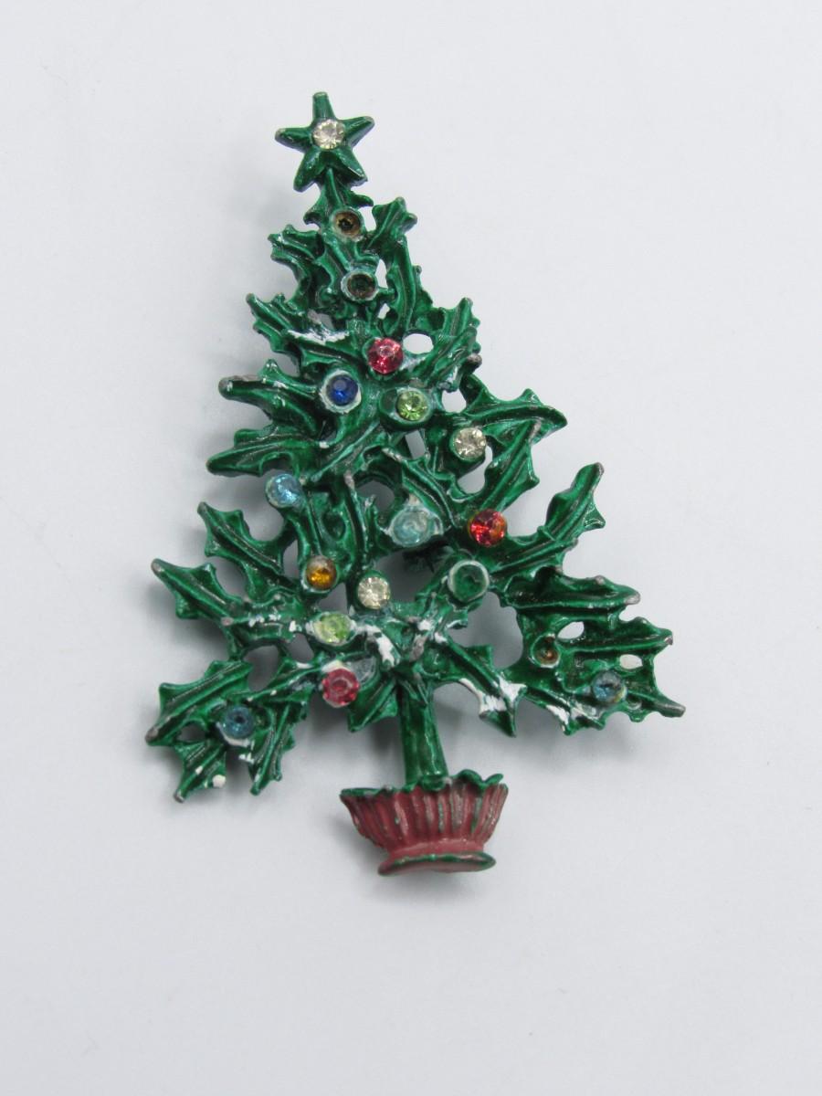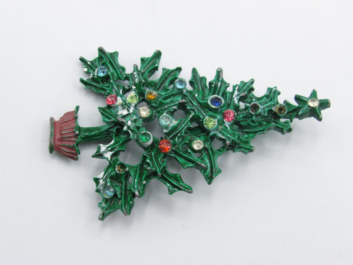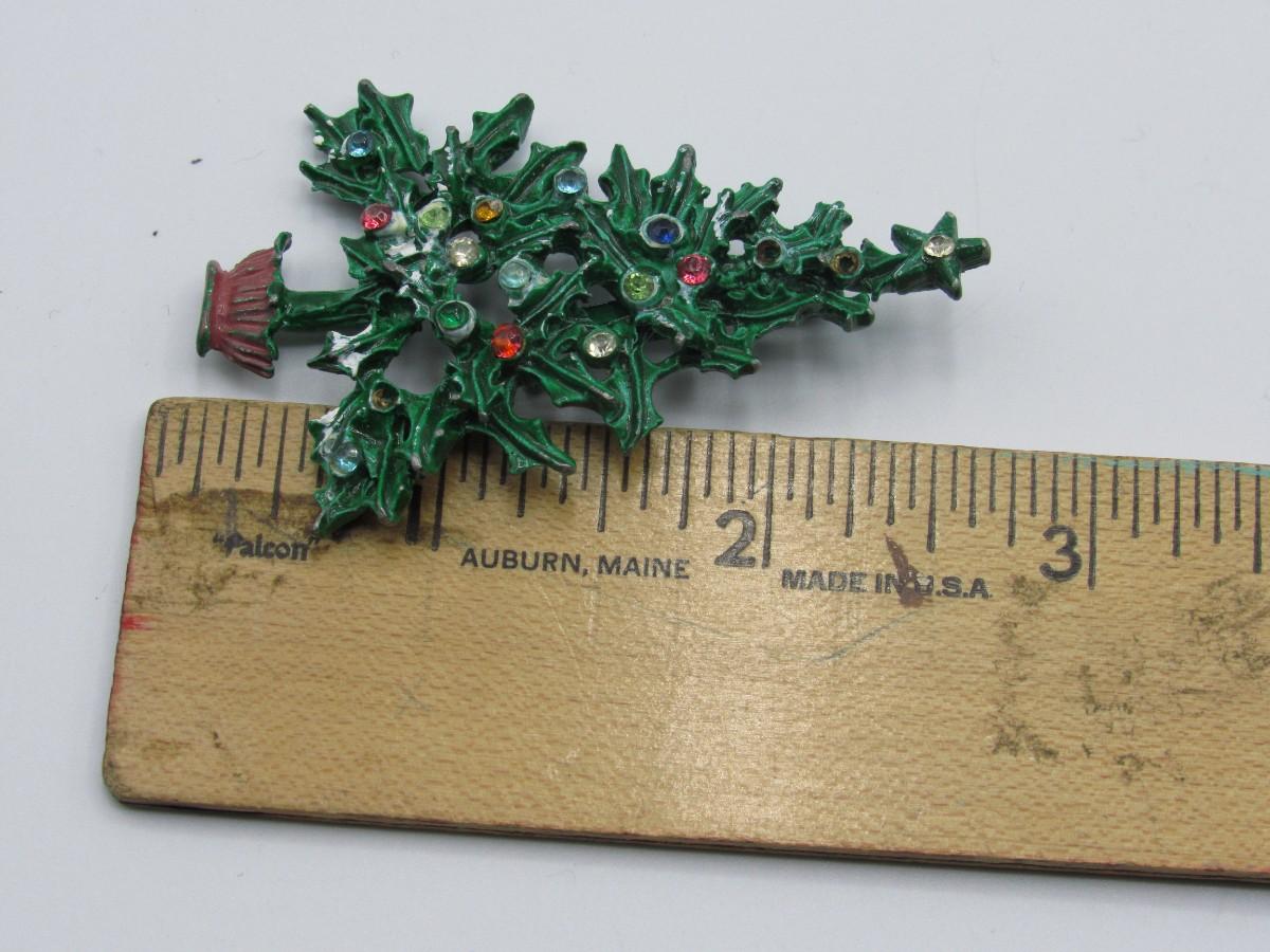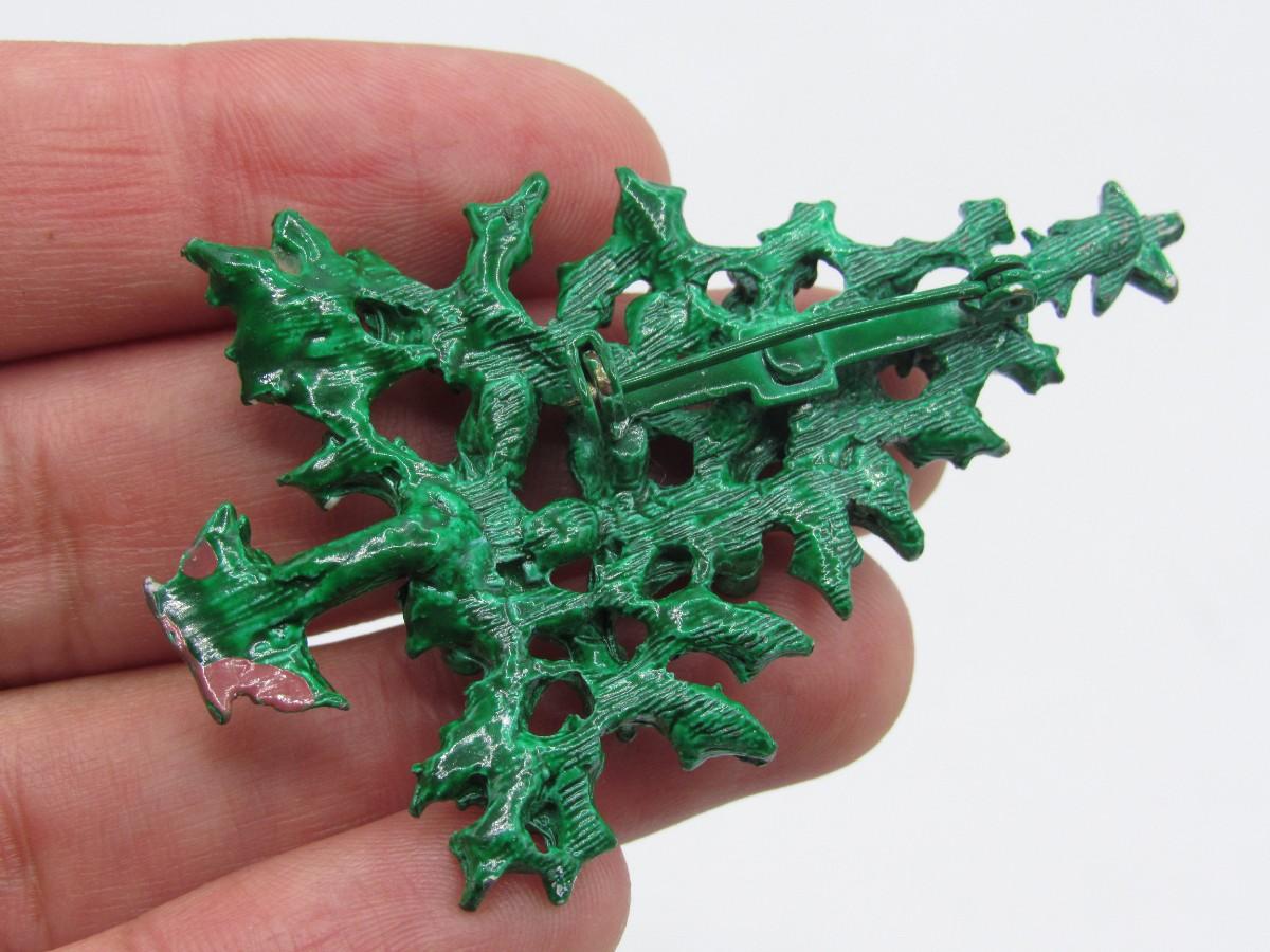 Vintage Painted Metal Christmas Tree Pin Brooch