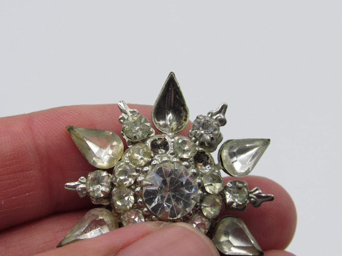 Vintage Silver Star Shaped Rhinestone Brooch Pin