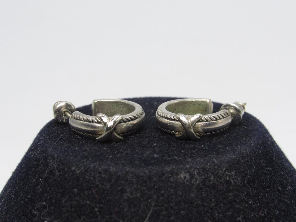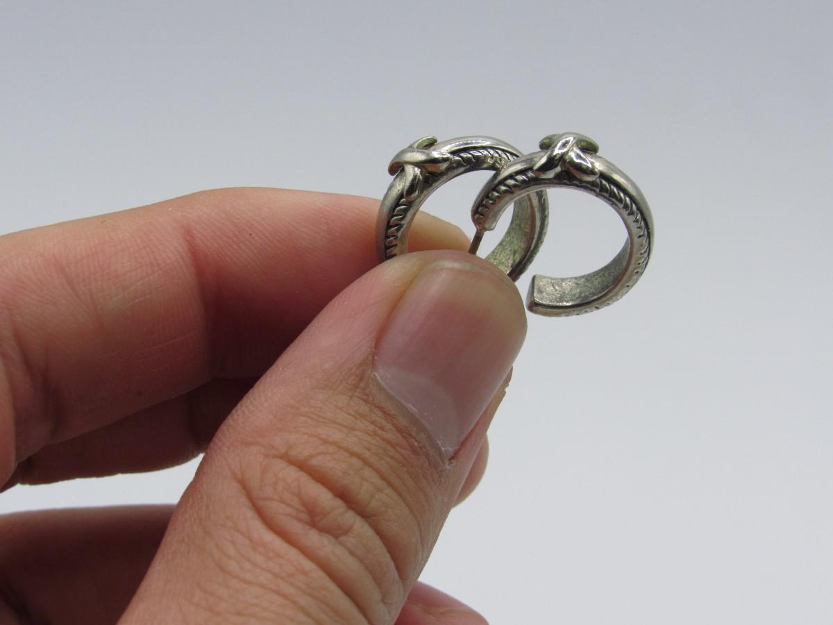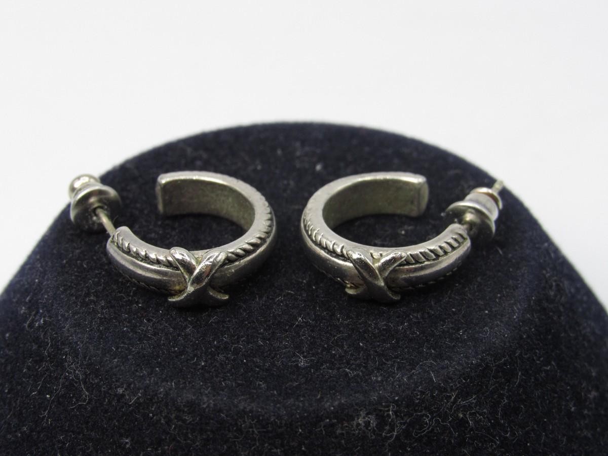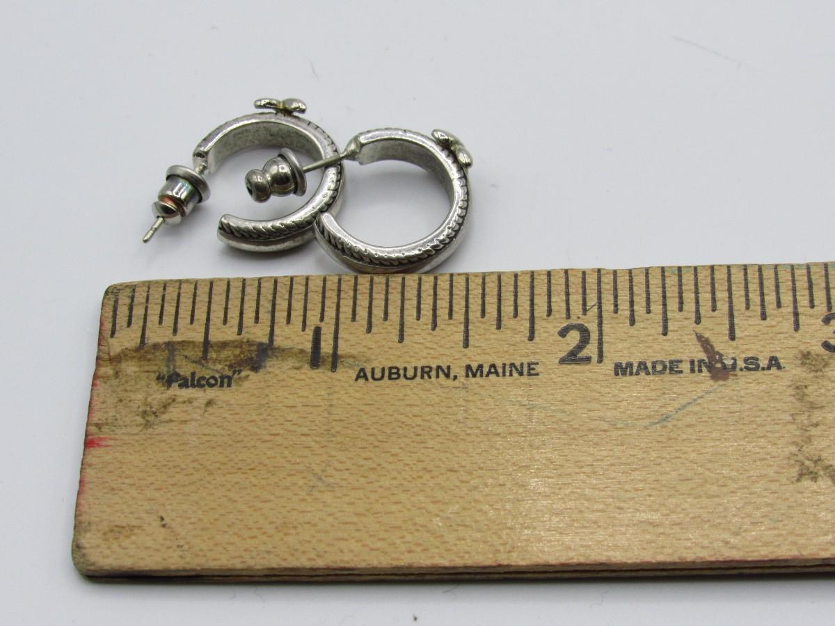 Retro Silver Tone Small Hoop Tied Knot Textured Earrings