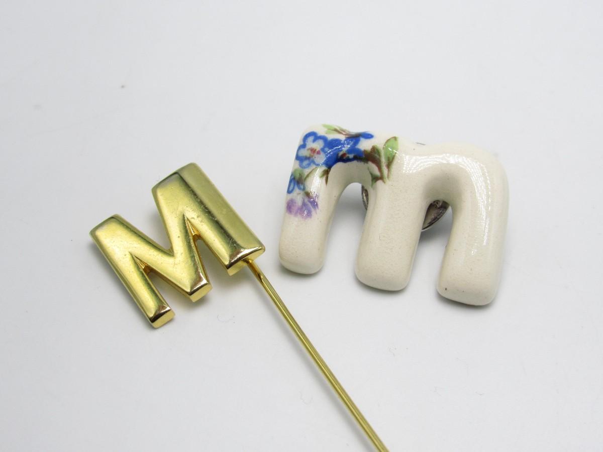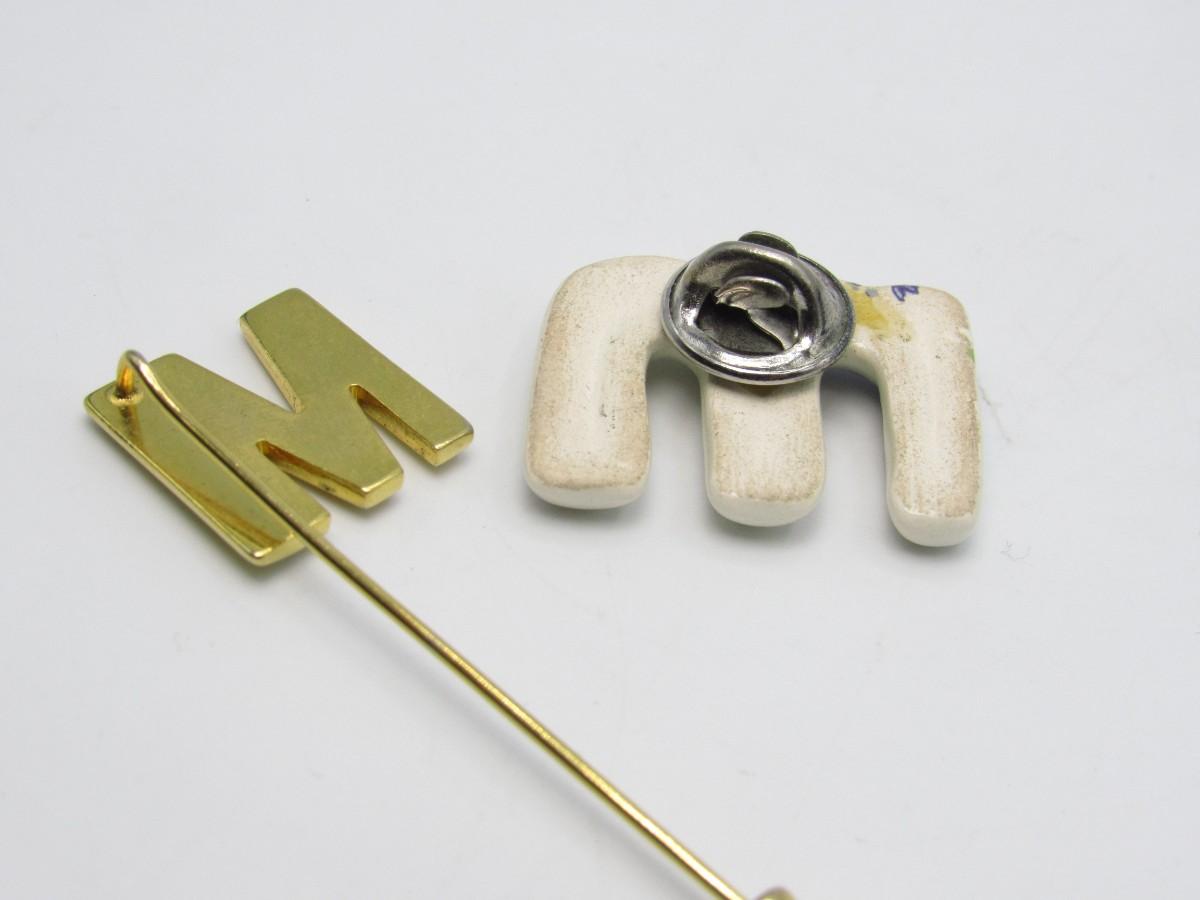 M Initial Ceramic & Gold Tone Metal Pin Lot