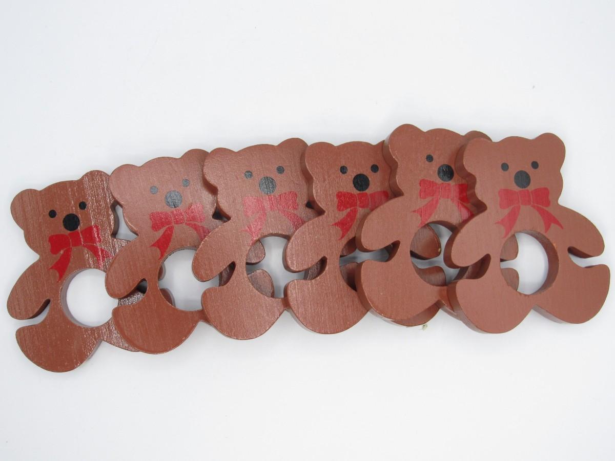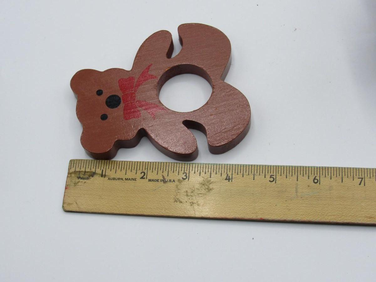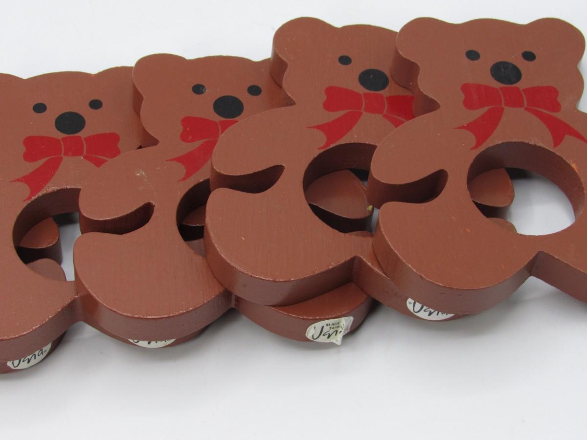 Vintage Wooden Bear Hand Painted Cut Out Cookie Shaped Vera Neumann Napkin Rings