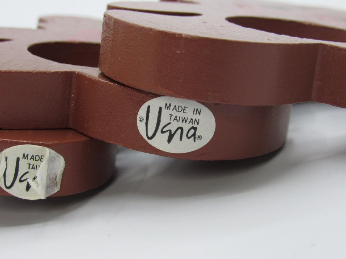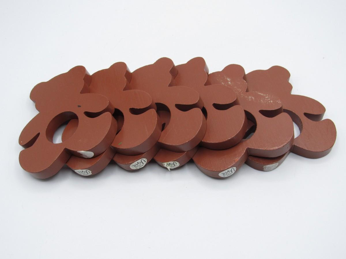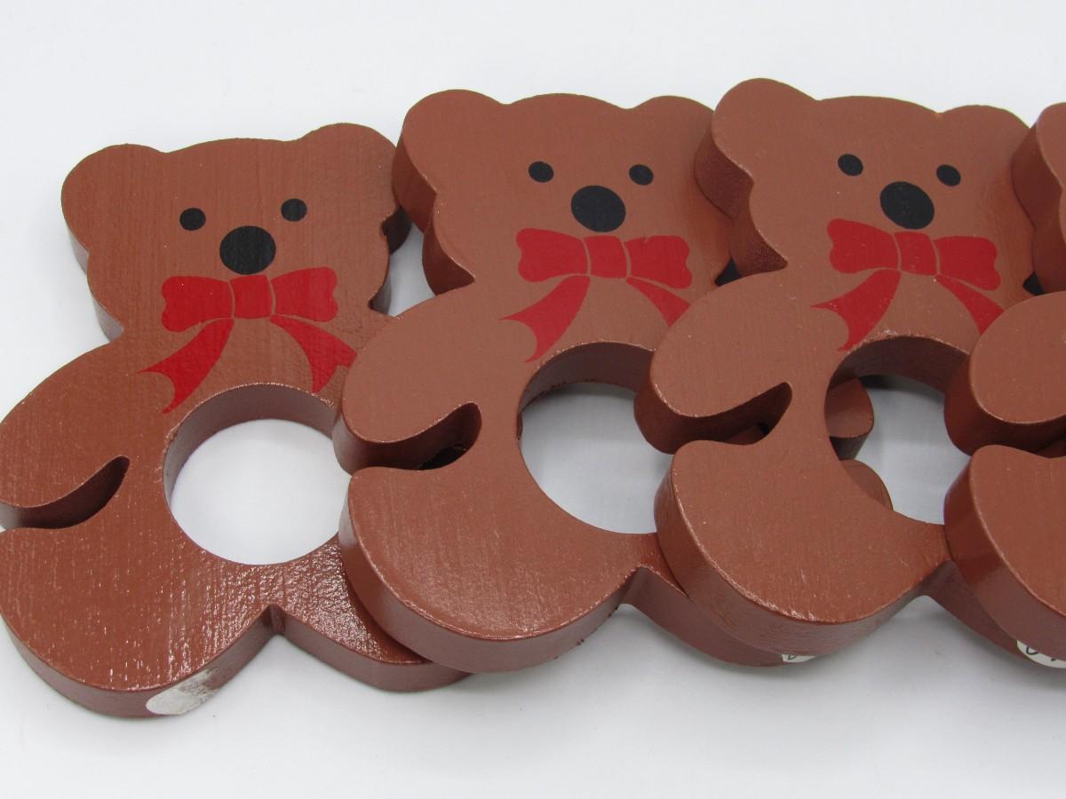 Vintage Wooden Bear Hand Painted Cut Out Cookie Shaped Vera Neumann Napkin Rings