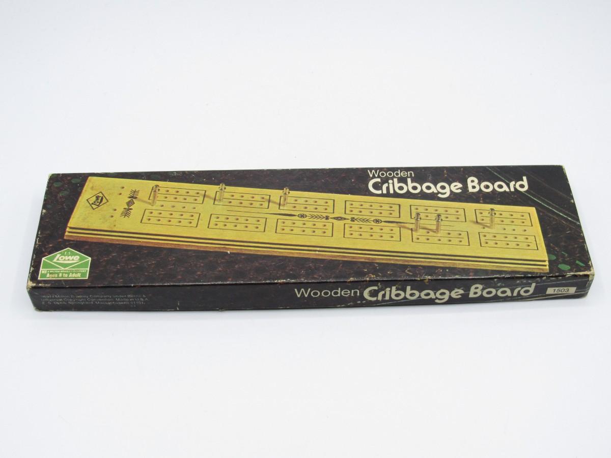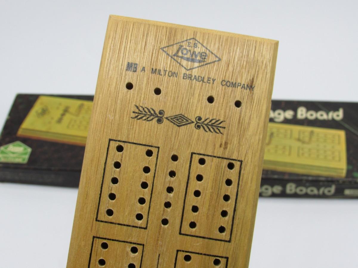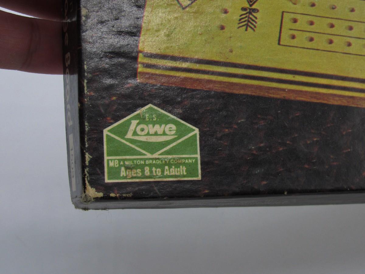 Vintage 1974 Milton Bradley E.S Lowe Wooden Cribbage Board with Original Box