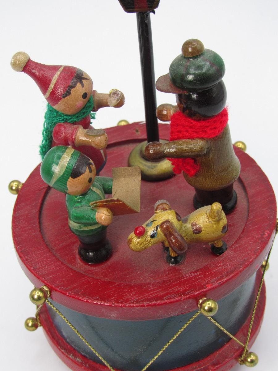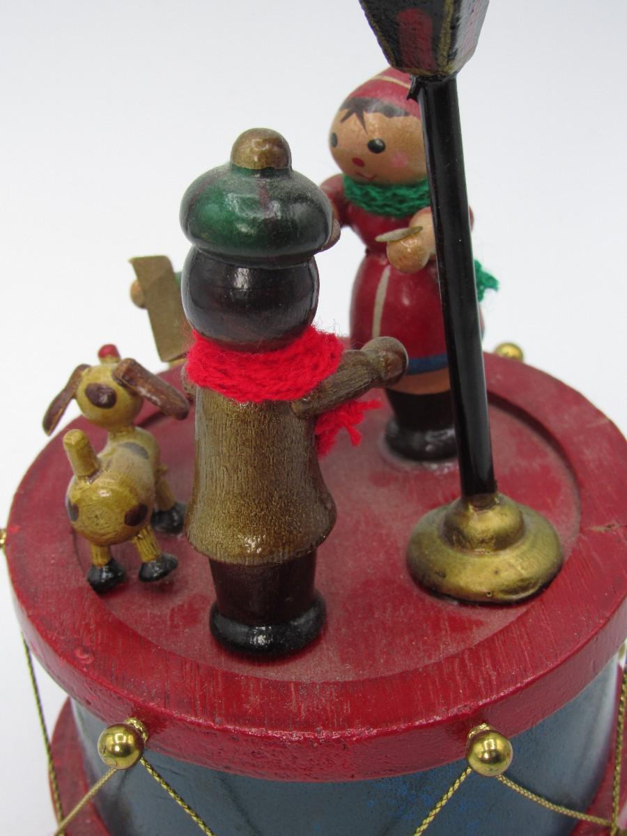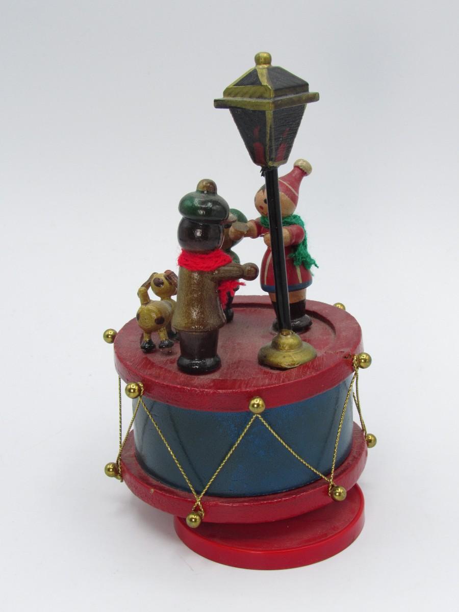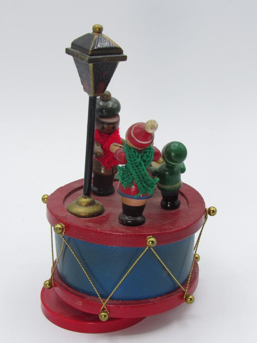 Retro Spinning Wooden Little Drum with Caroler Figurines Christmas Music Box