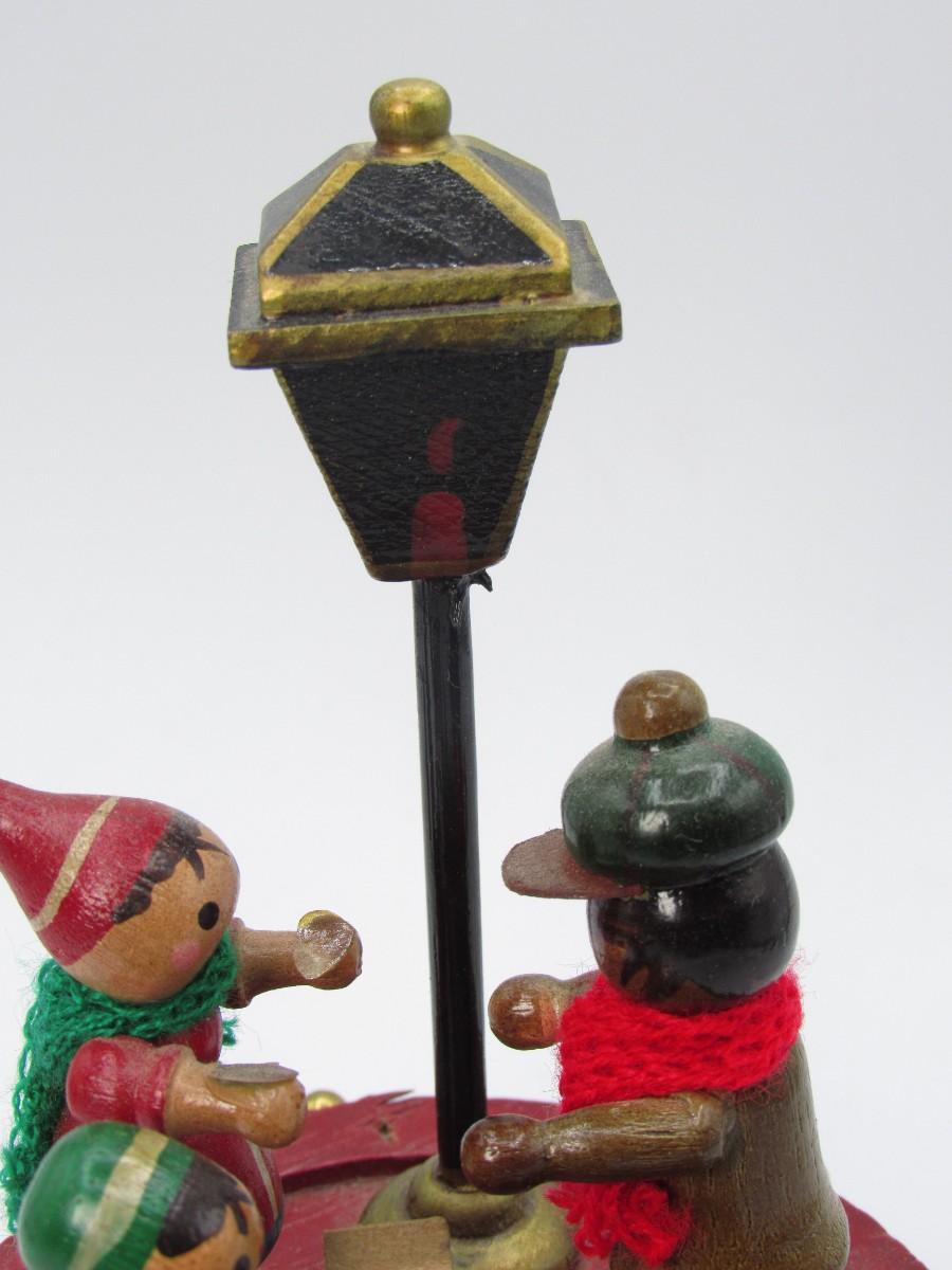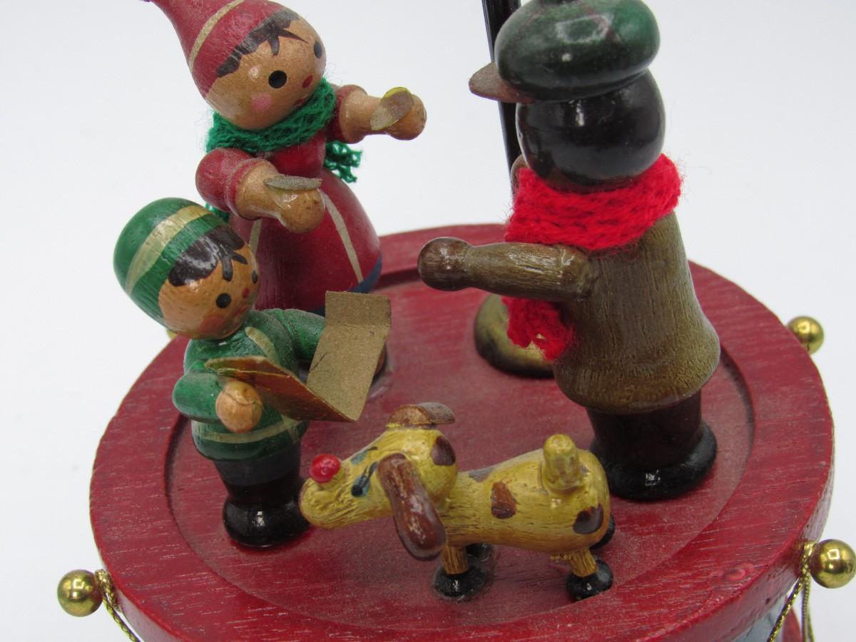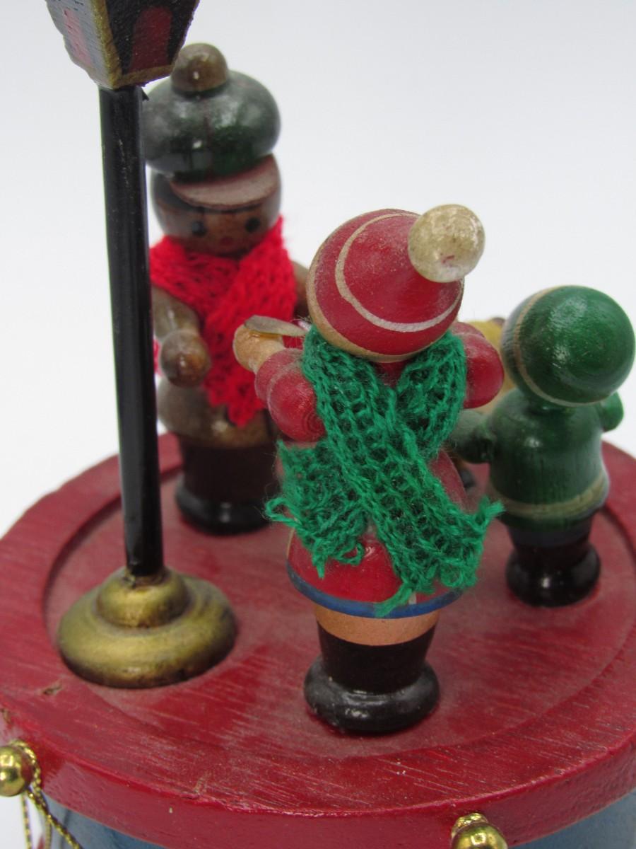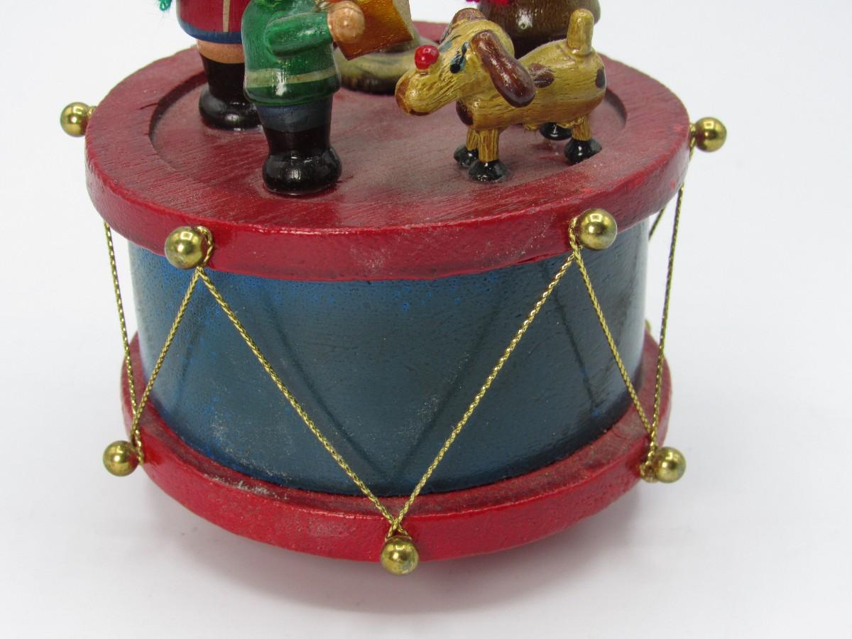Retro Spinning Wooden Little Drum with Caroler Figurines Christmas Music Box