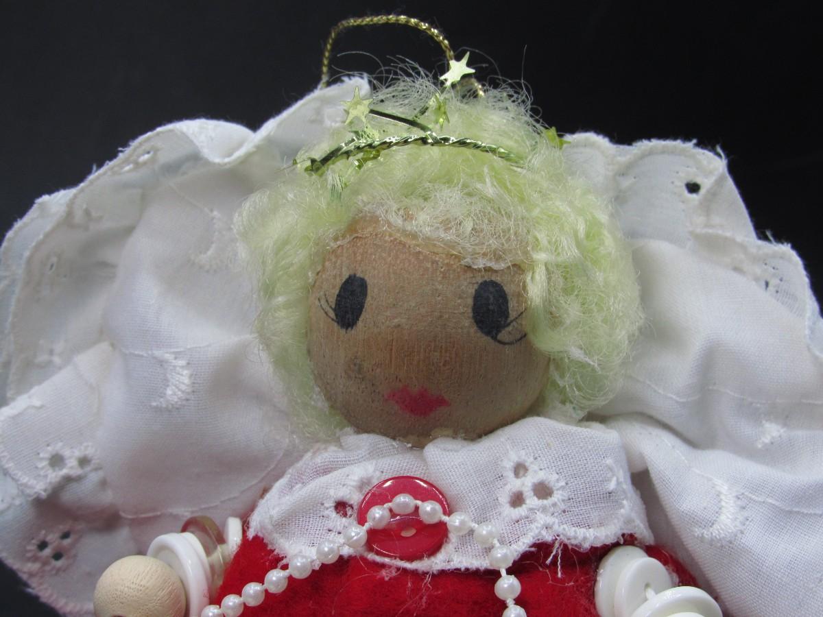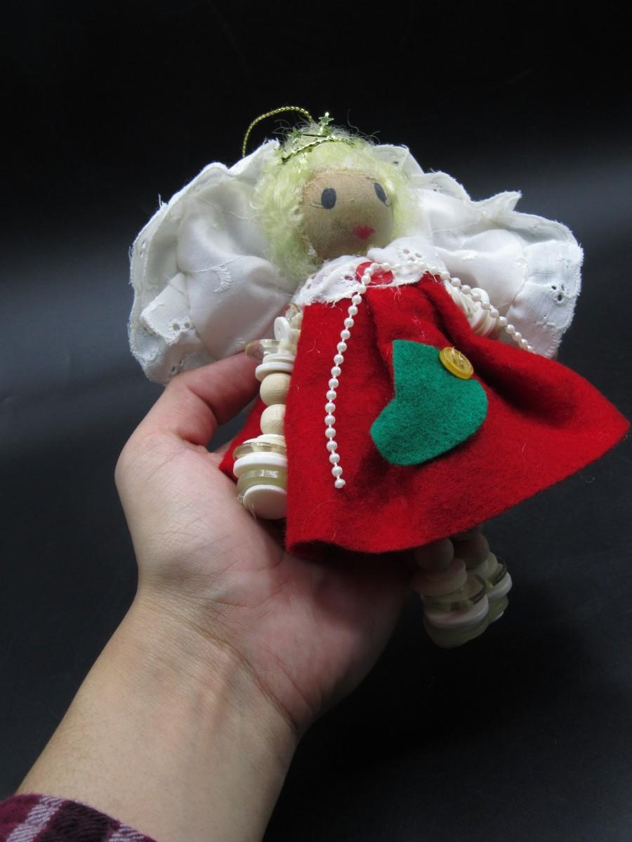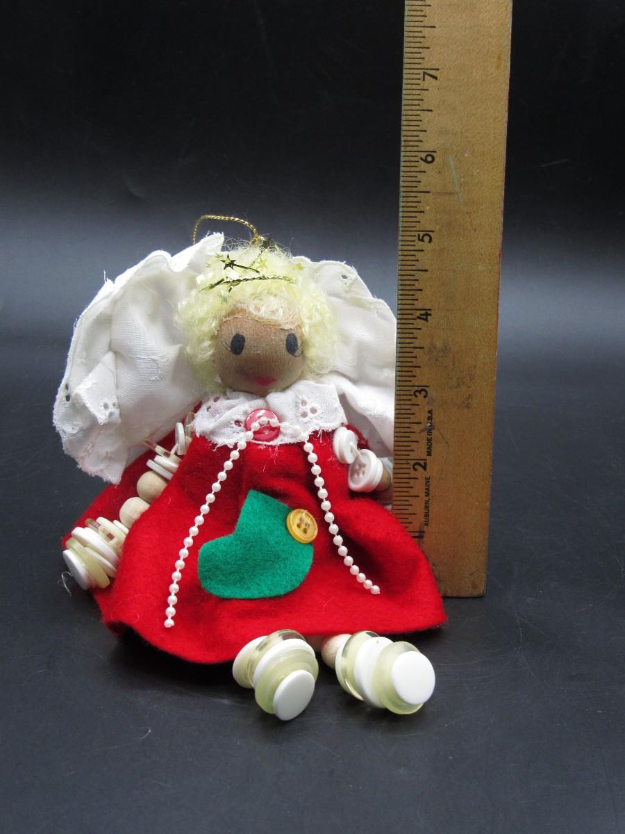 Retro Crafted Cottagecore Style Fabric Button Angel Shelf Sitter Decor