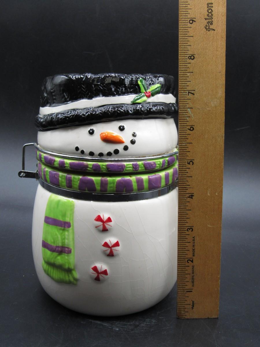 Ceramic Holiday Christmas Snowman Sealable Jar