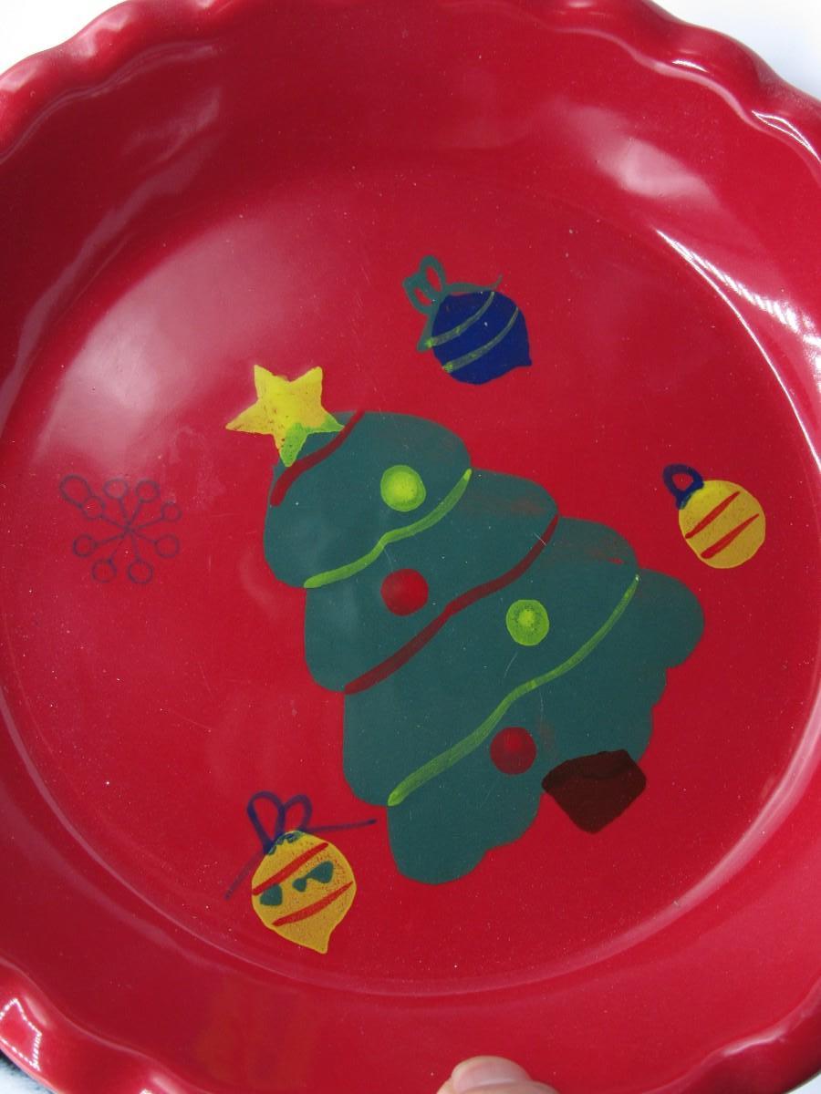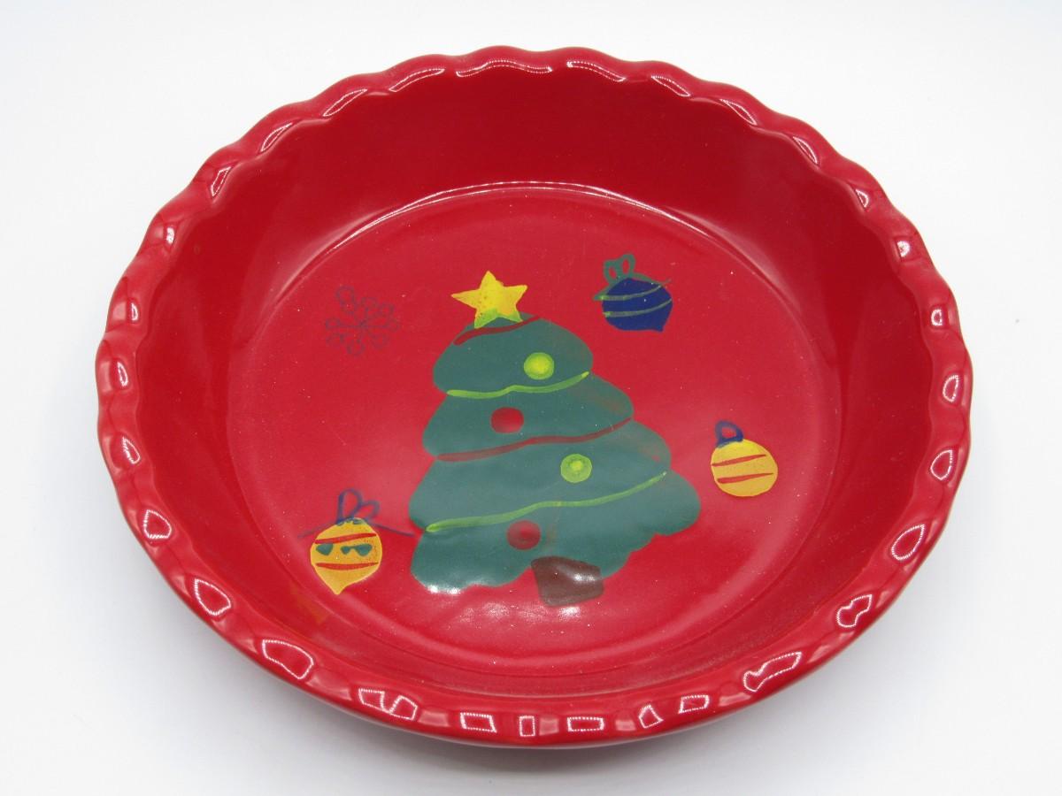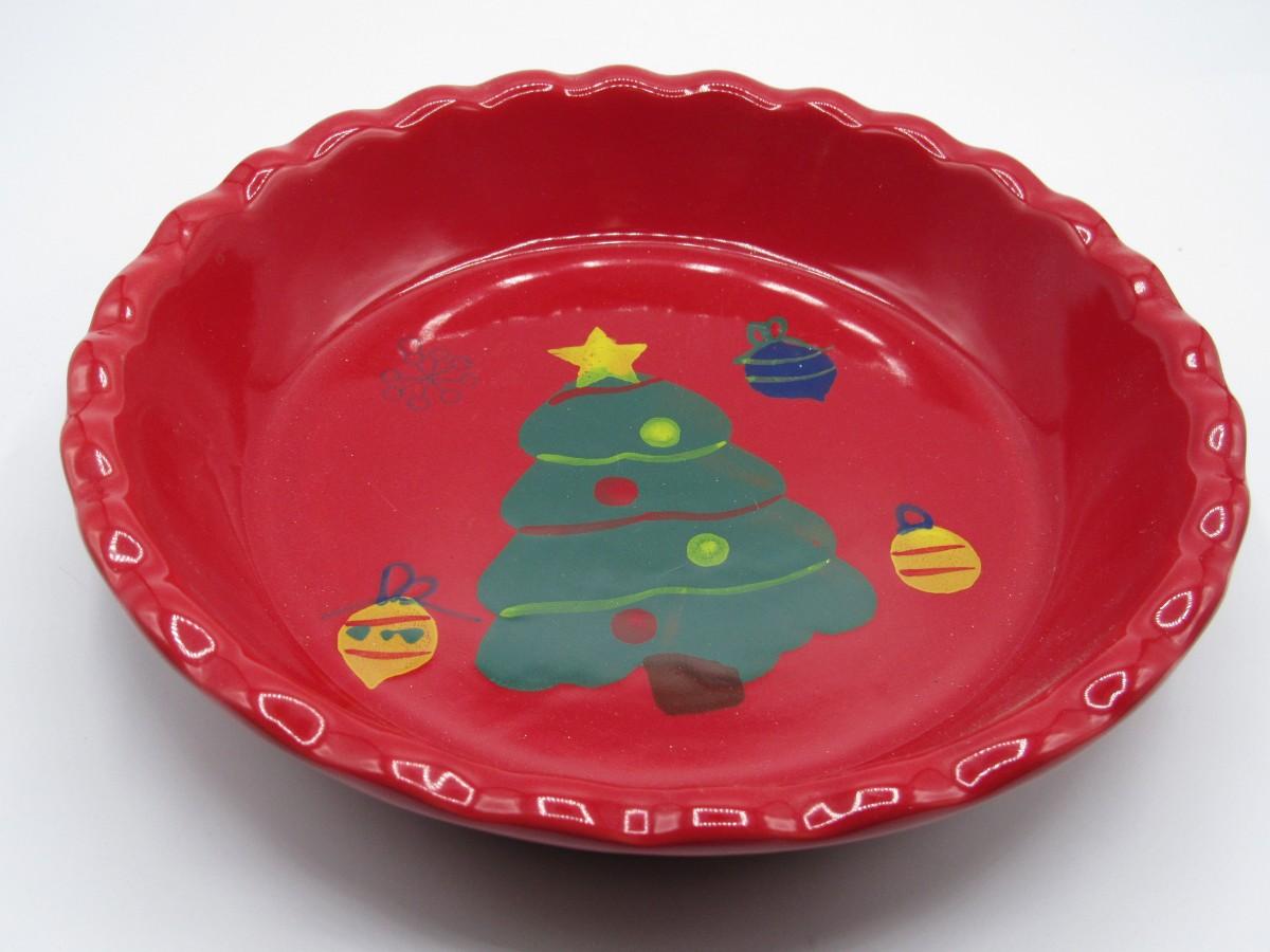 Michaels Painted Ceramic Christmas Tree Pie Serving Dish Oven Microwave Dishwasher Safe