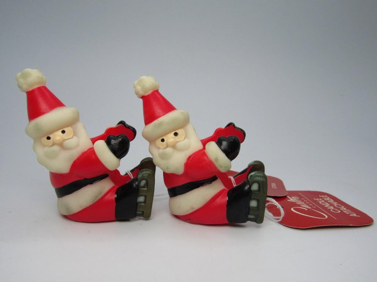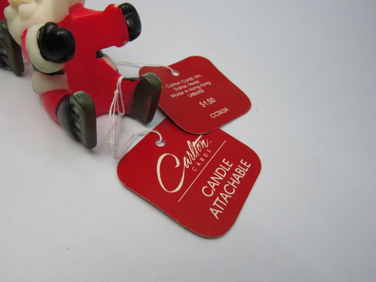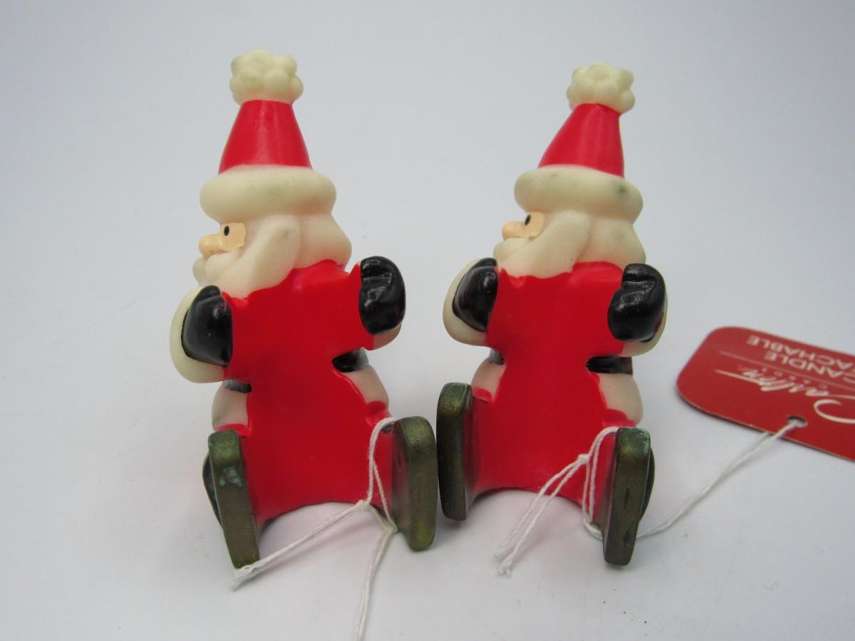 Pair of Vintage Carlton Cards Candle Detachable Hugging Santa Claus with Original Tag