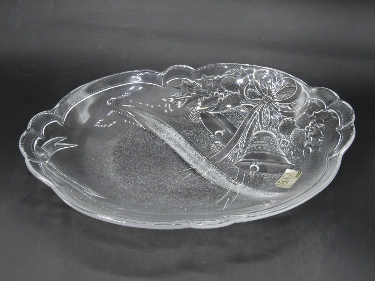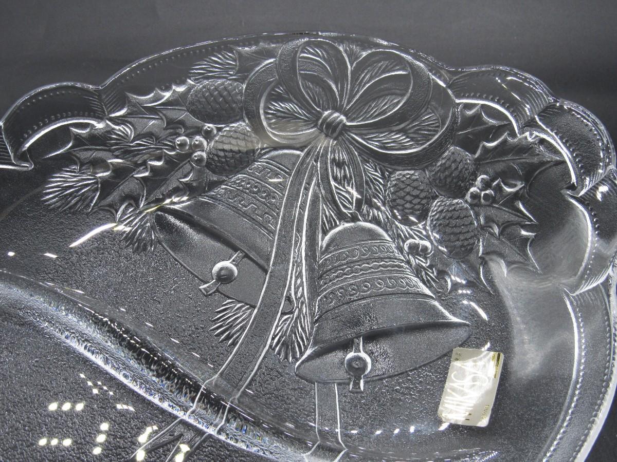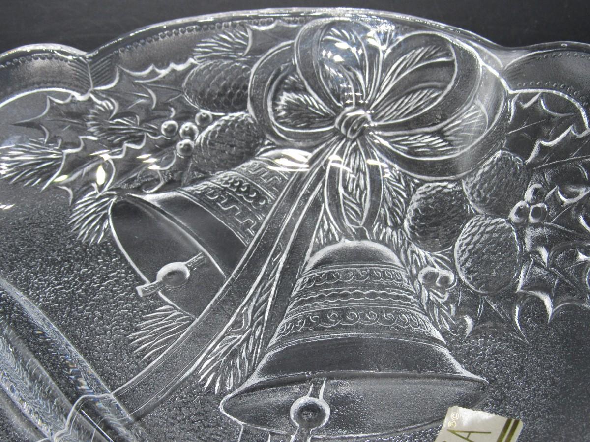 Mikasa Crystal Glass Holiday Bells Divided Relish Dish with Original Box