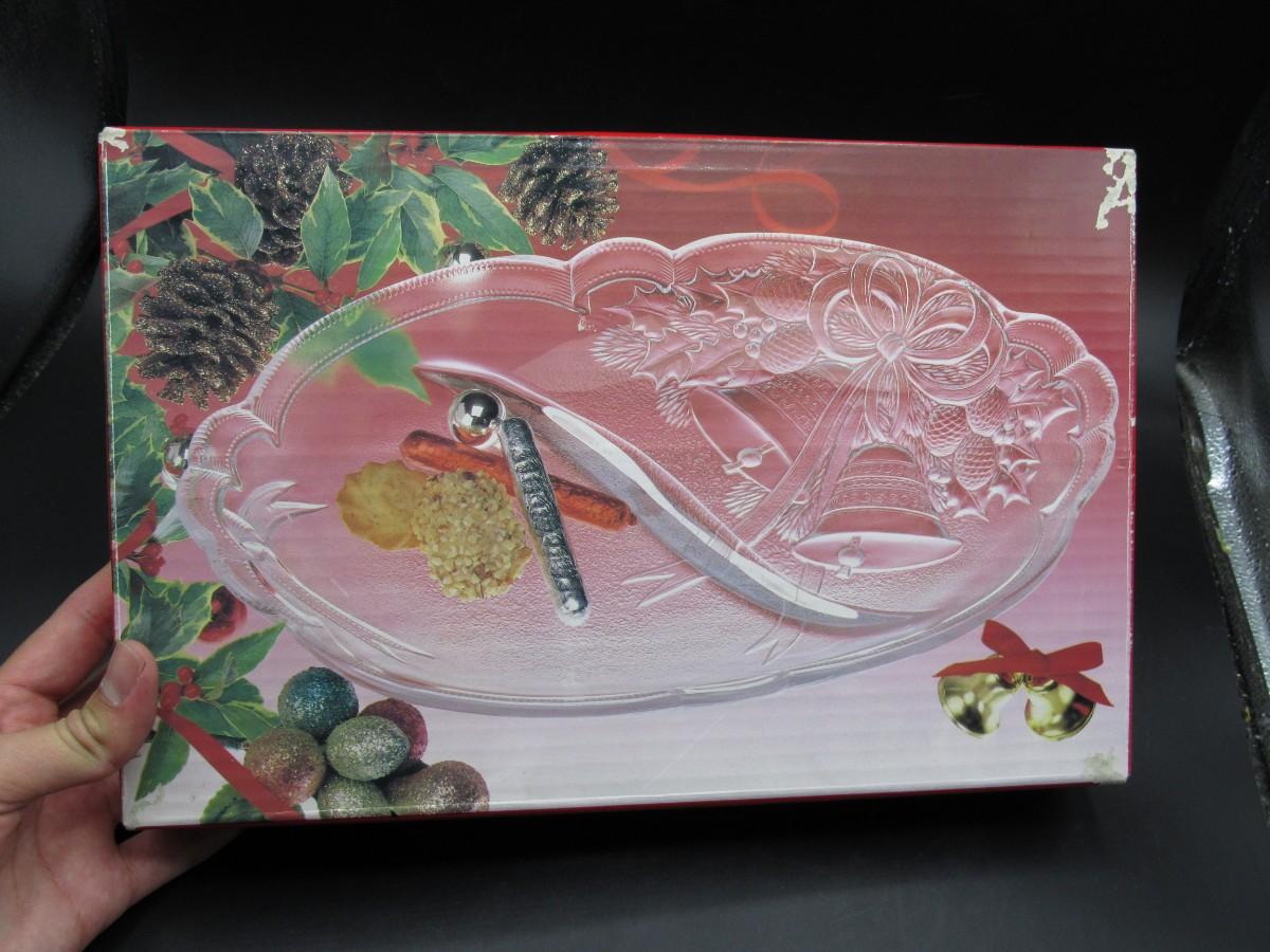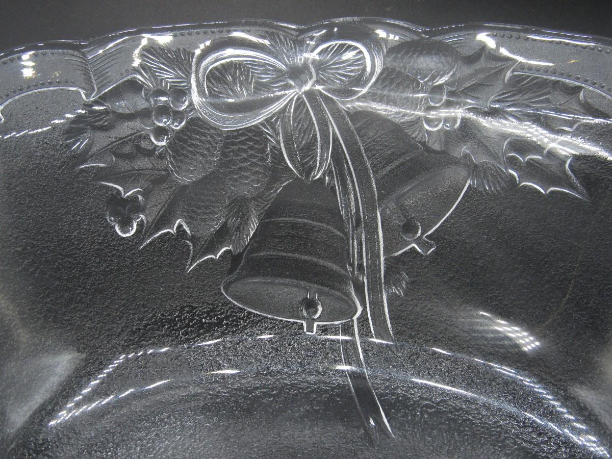 Mikasa Crystal Glass Holiday Bells Oval Serving Bowl with Original Box