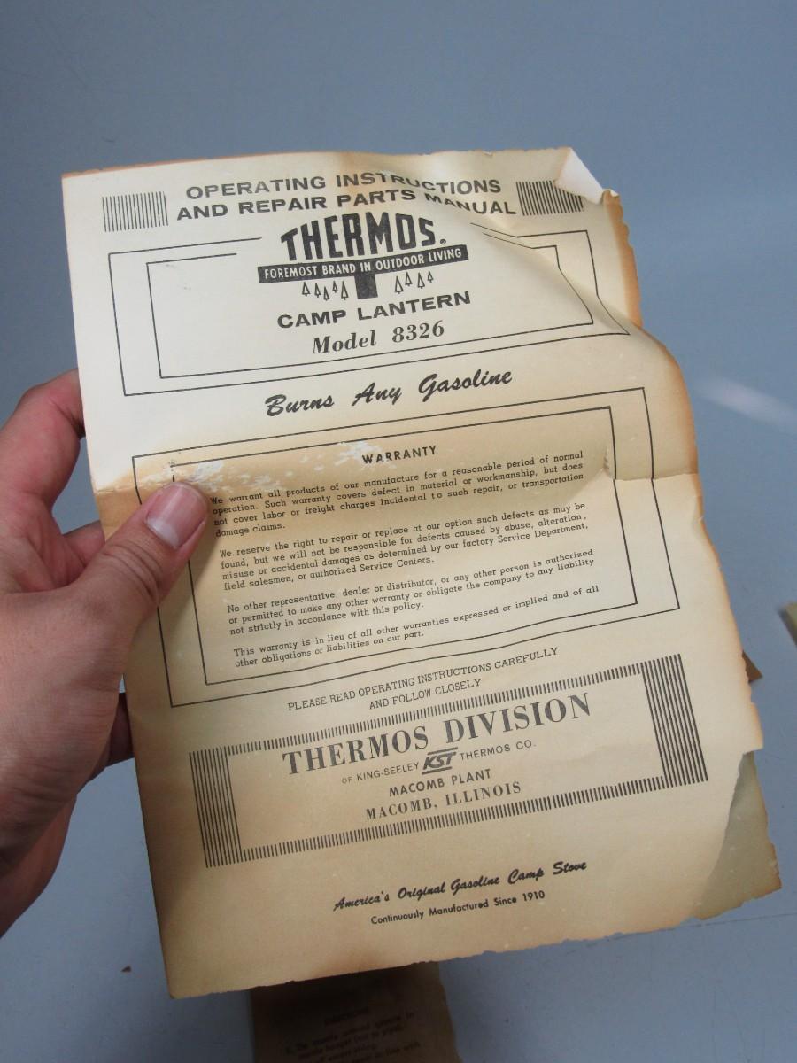 New Vintage Thermos Camp Lantern Model No. 8326 Any Gasoline Camping Lantern
