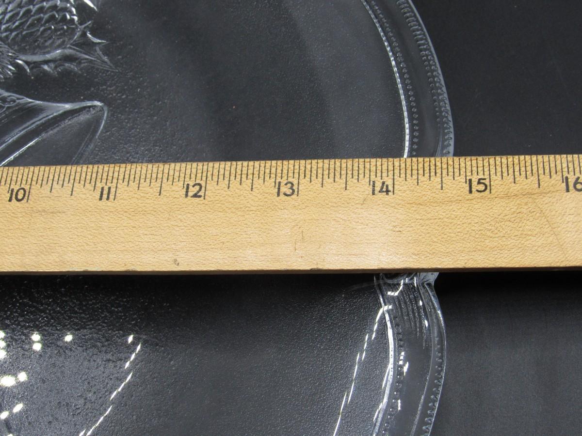 There is no significant damage to the glass platter and is in overall good collectible or displayable condition. Check pictures for more details and sizing.