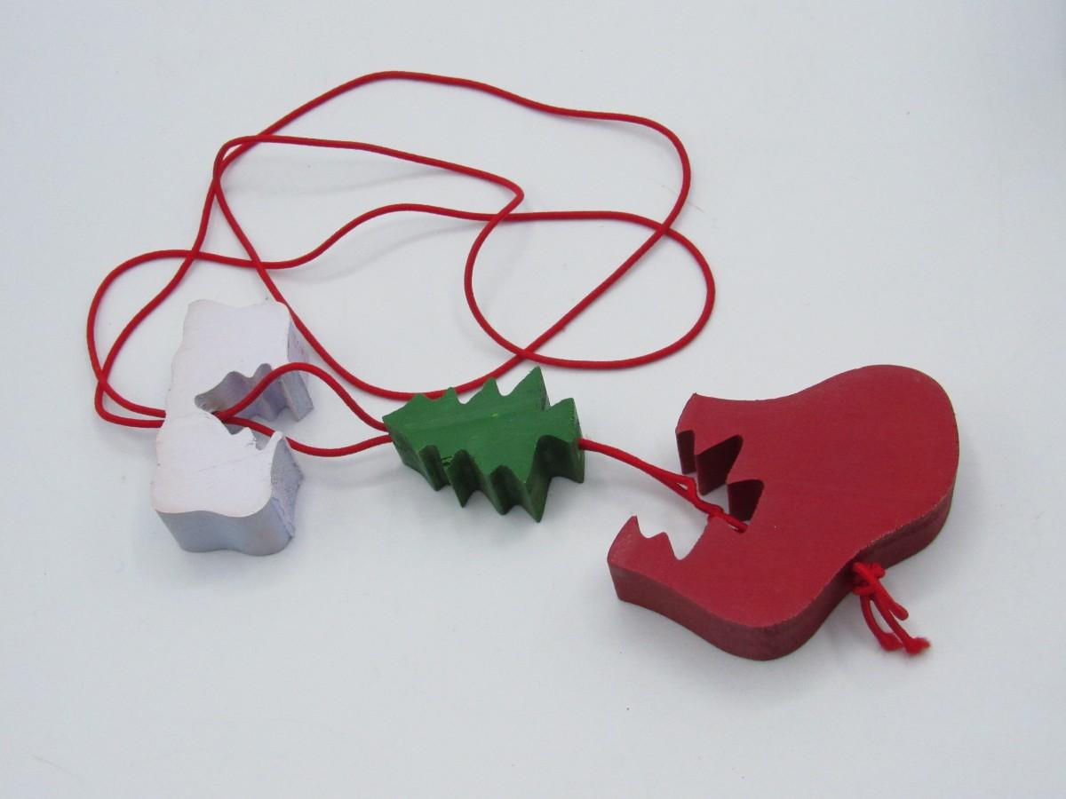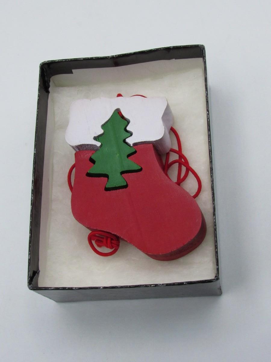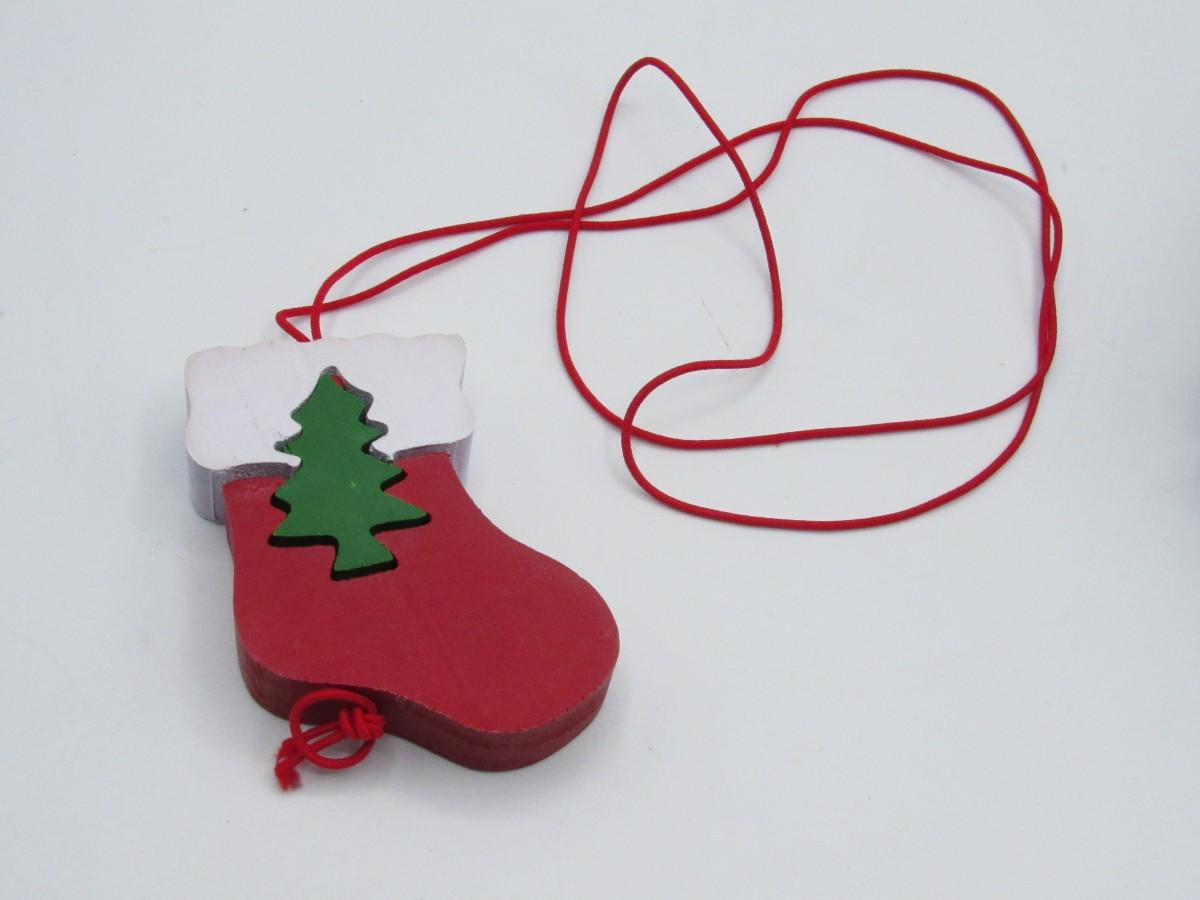 Wooden Deconstructed Pine Tree Stocking Charm Necklace