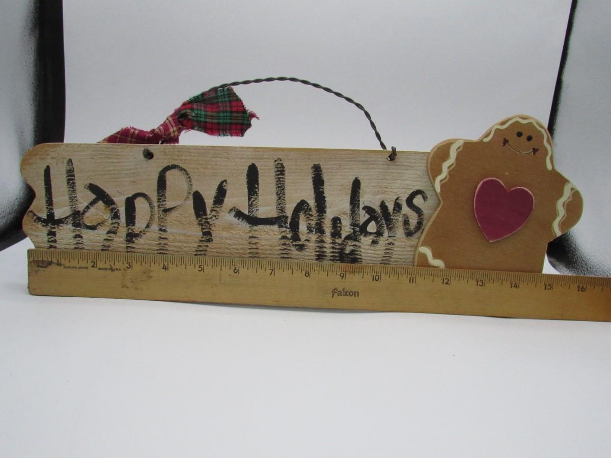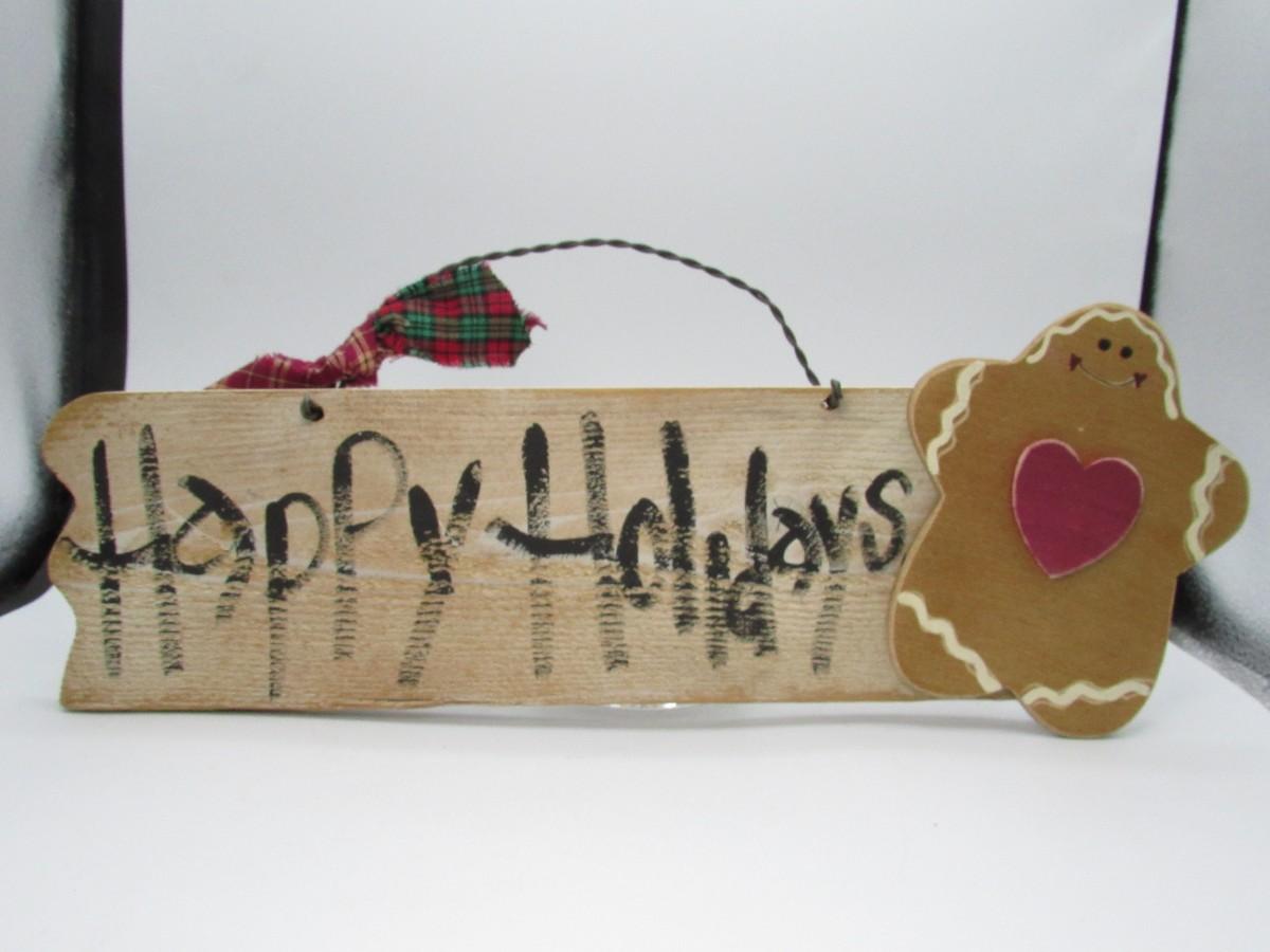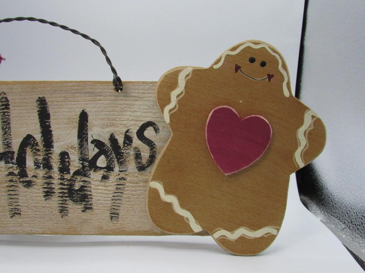 Happy Holiday's Ginger Bread Man Heart Hanging Wall Door Sign