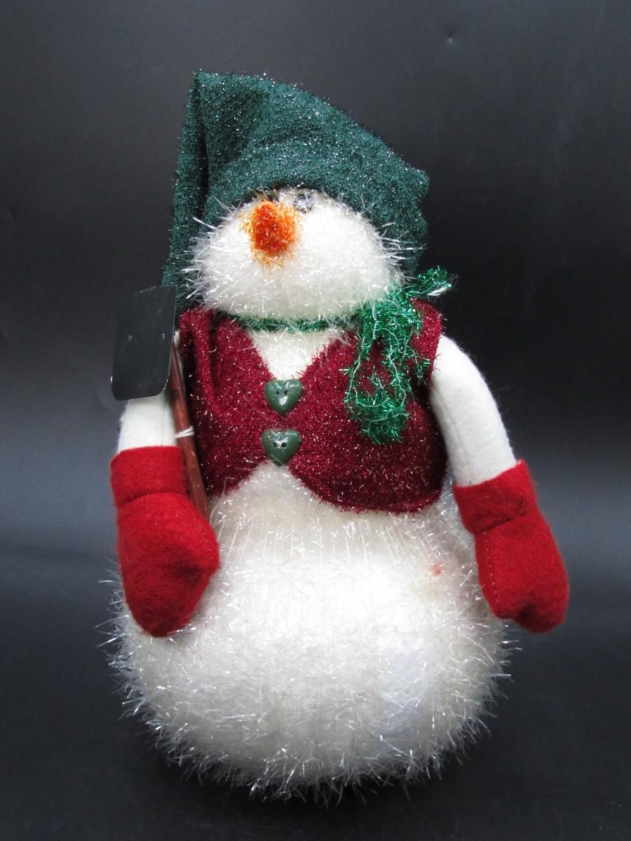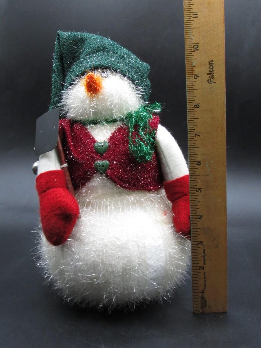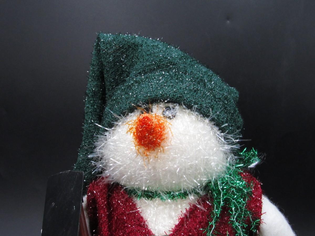 Hard Material Fuzzy Fabric Glitter Snowman Holding Gardening Tool Christmas Holiday Decor