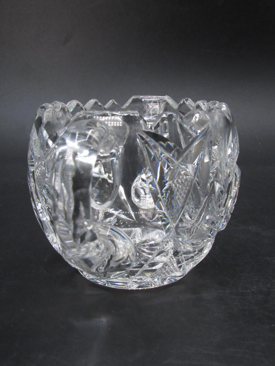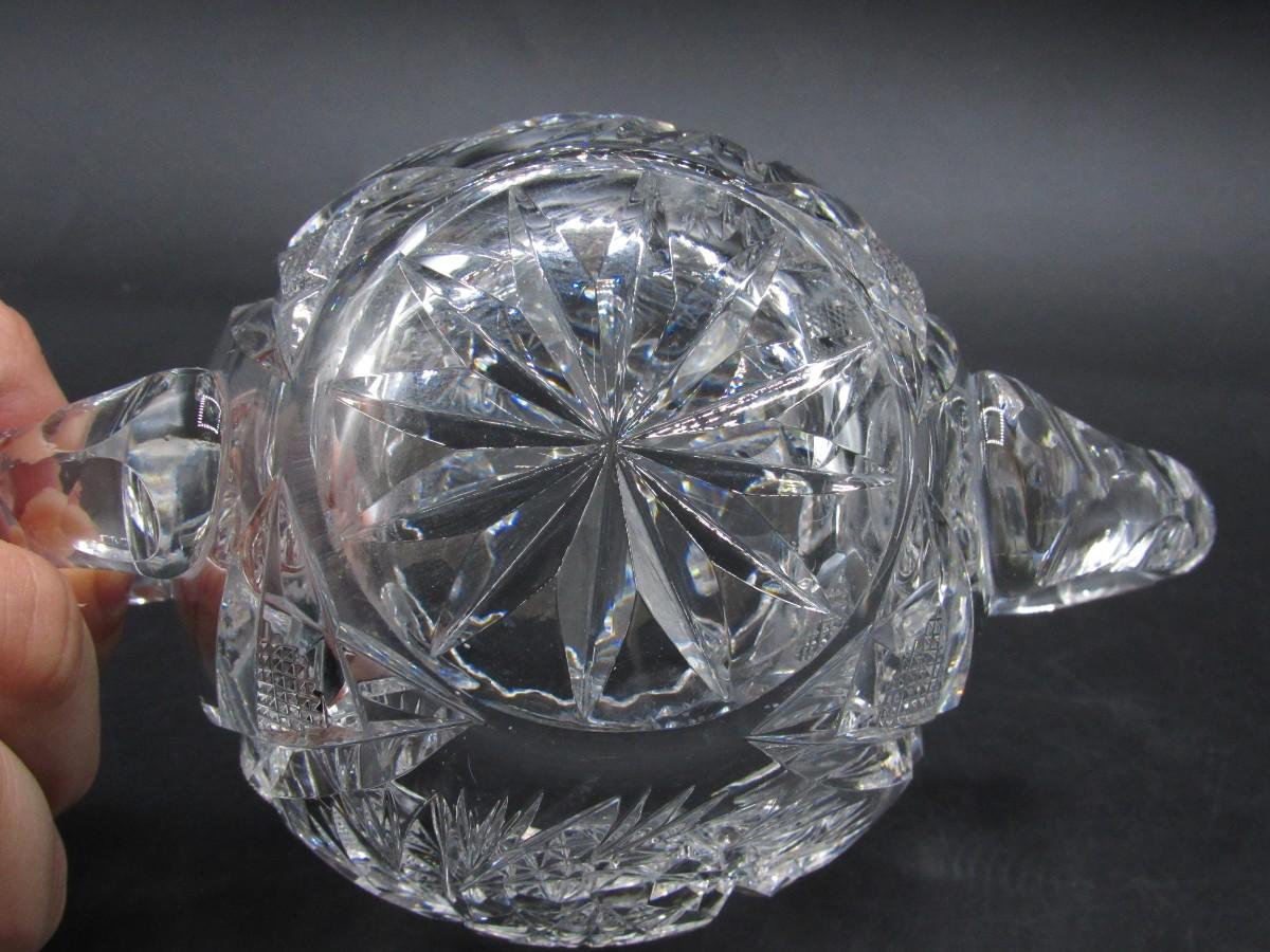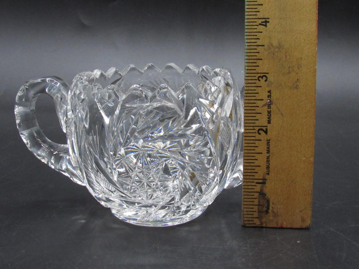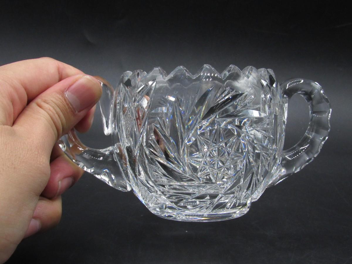 Antique American Brilliant Sugar Bowl Heavy Cut Crystal Glass Sawtooth Edge 2 Handles