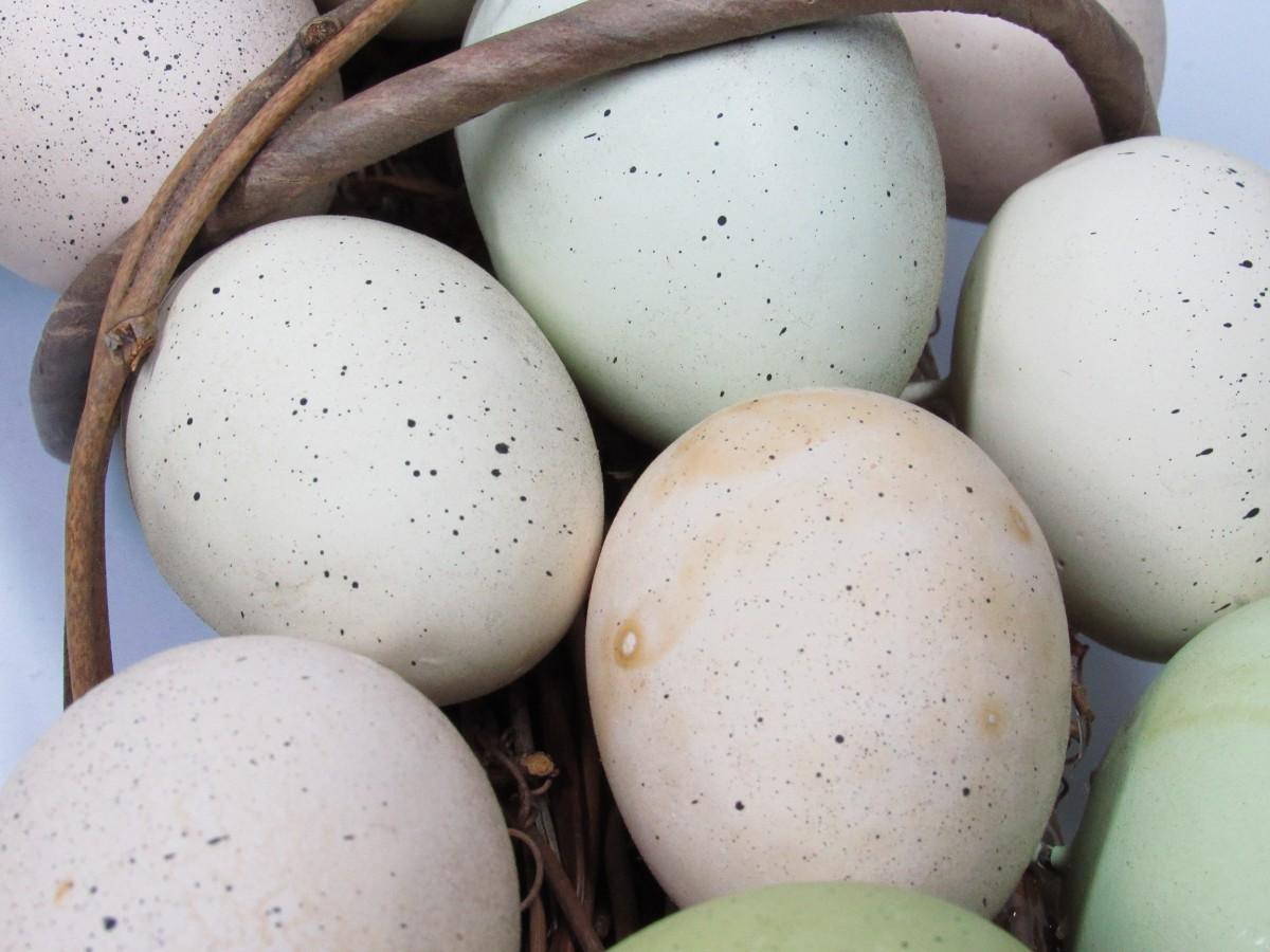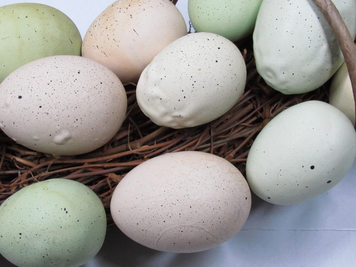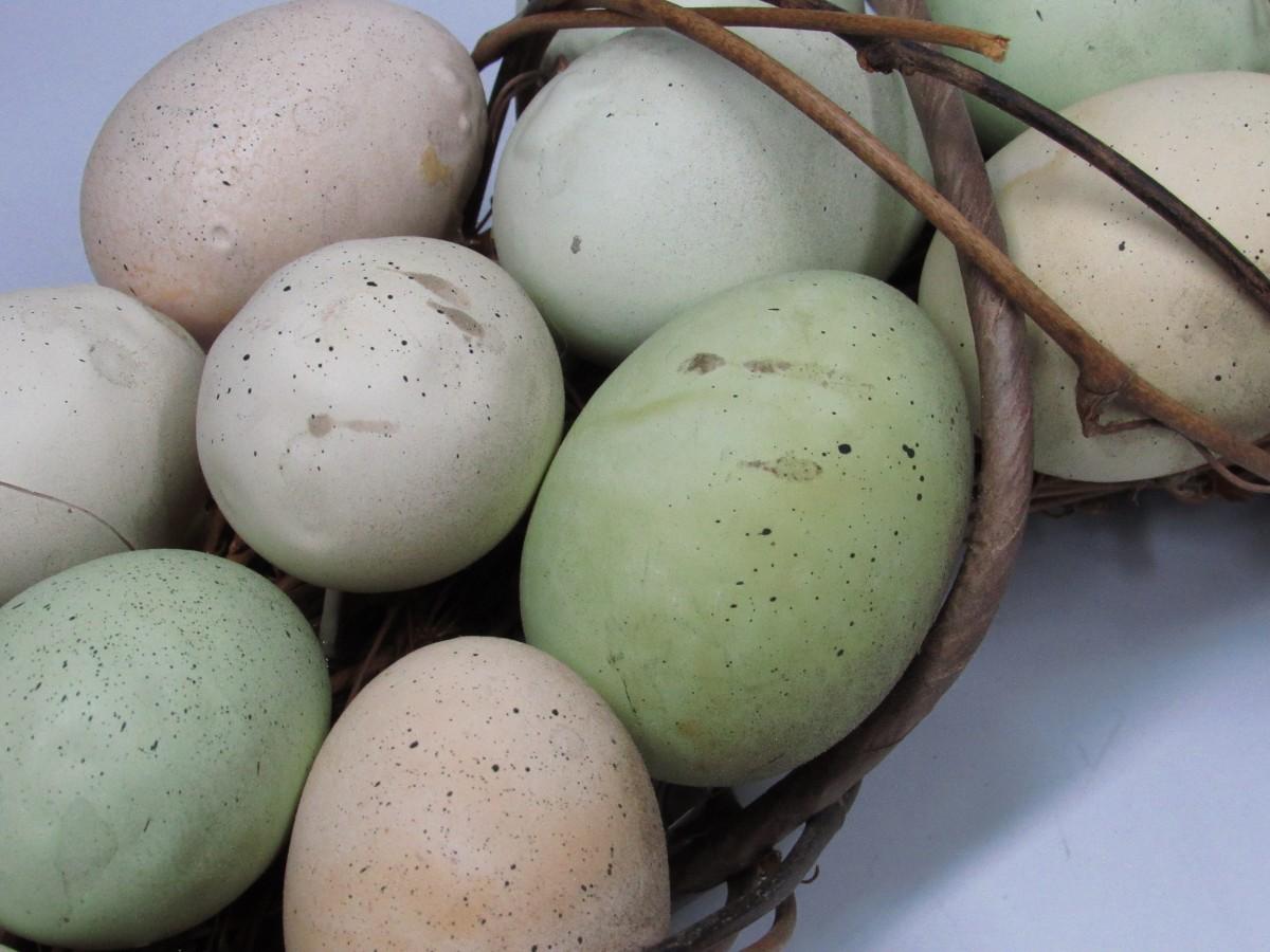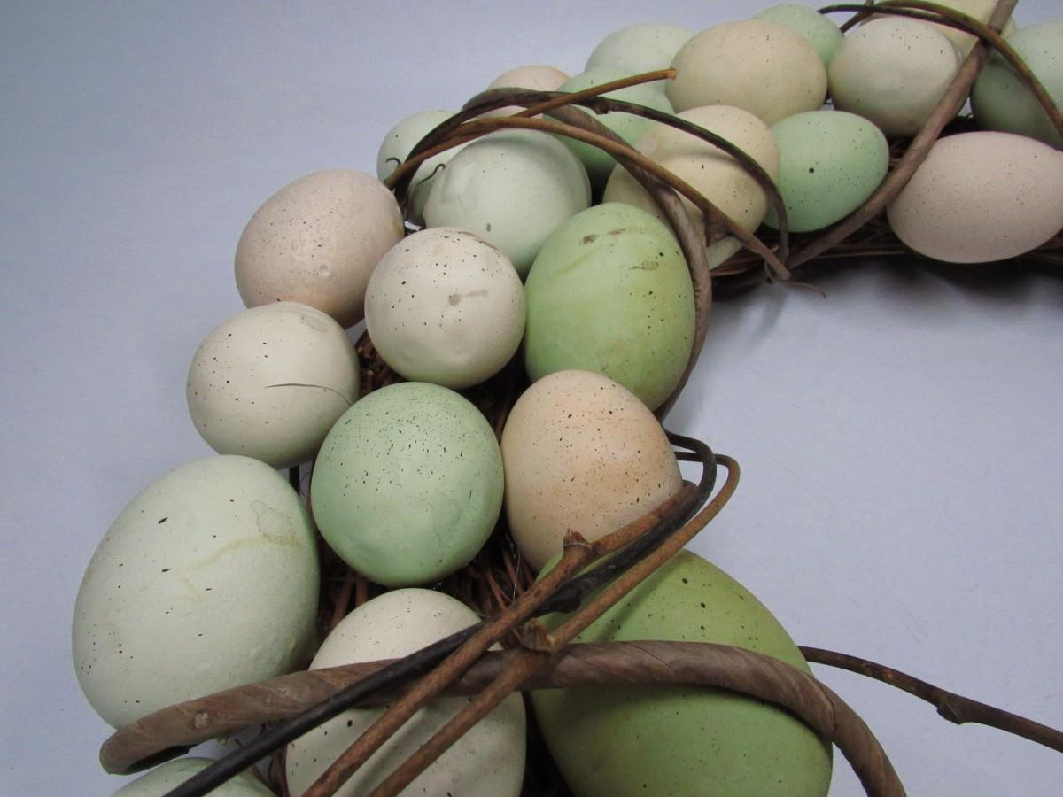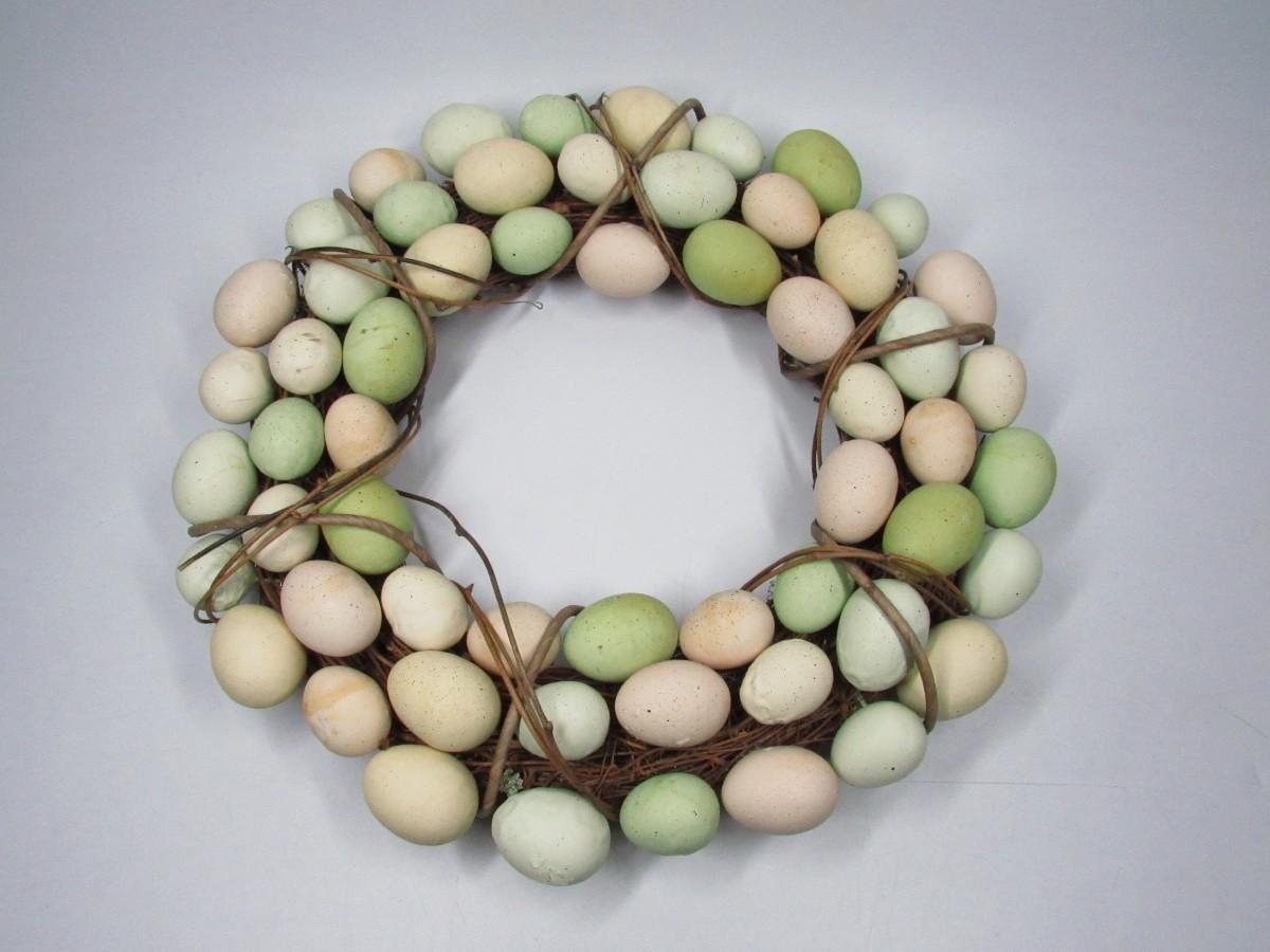 There is some light wear to the eggs on the wreath, but there is no significant damage and in good displayable condition. Check pictures for more details and sizing.