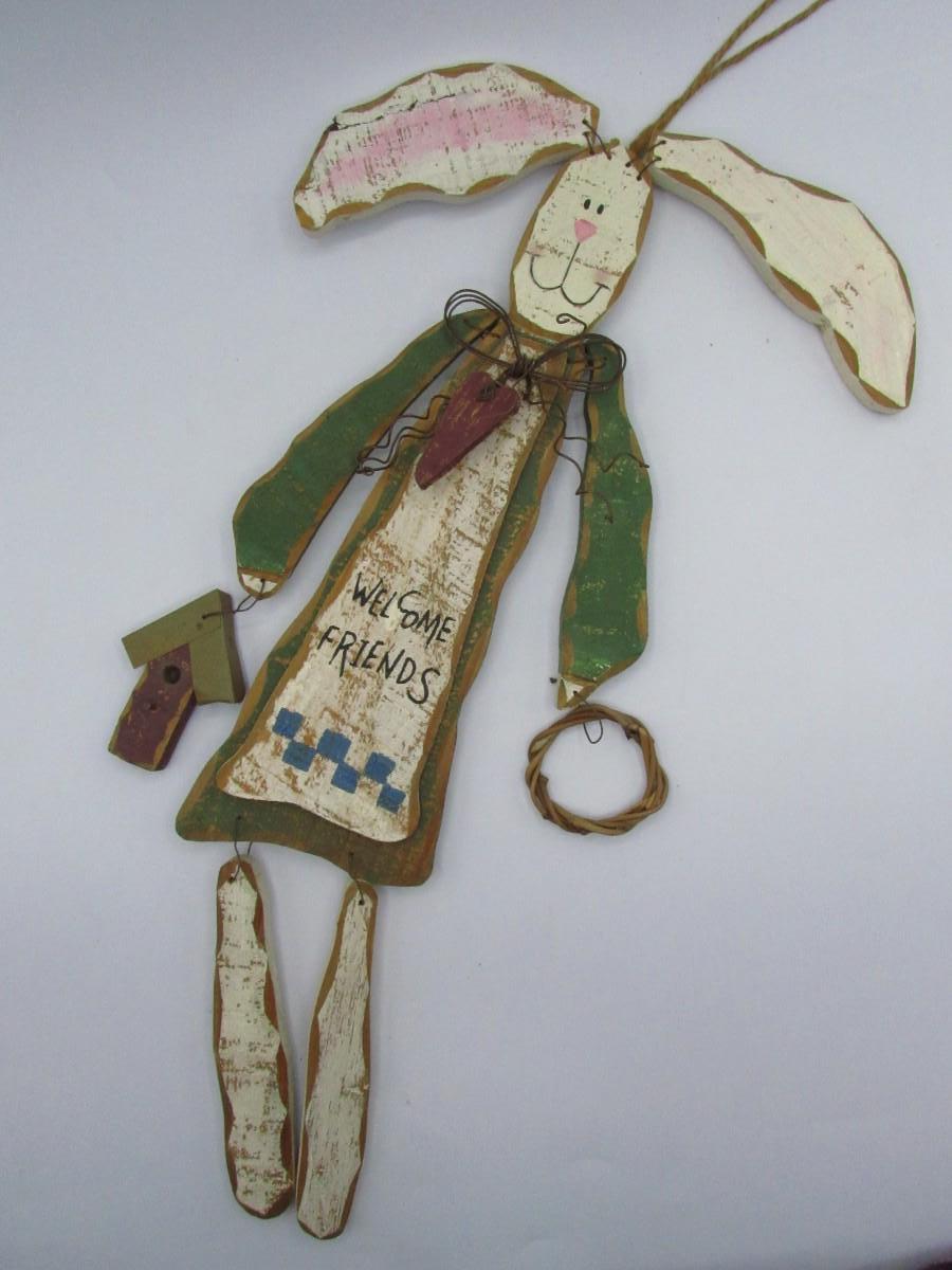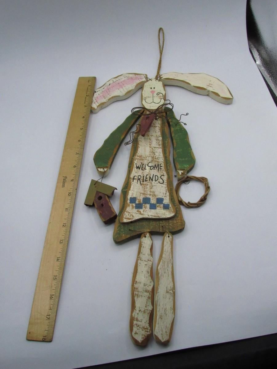 Welcome Friends Garden Easter Bunny Wall Hanging Home Decor Holiday Sign