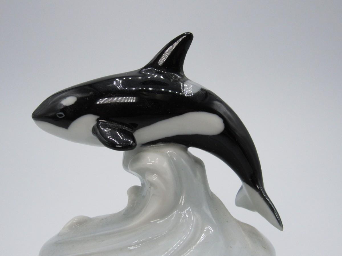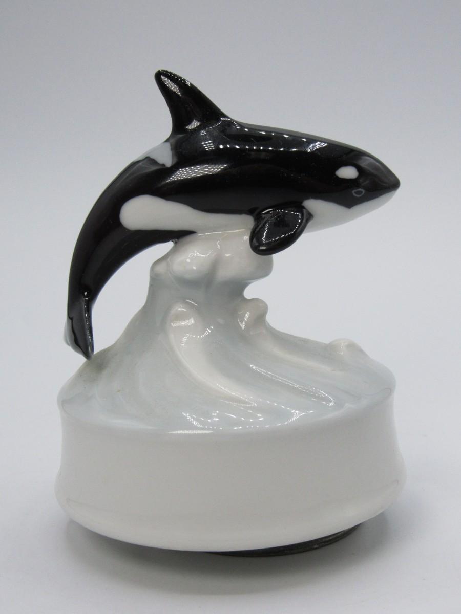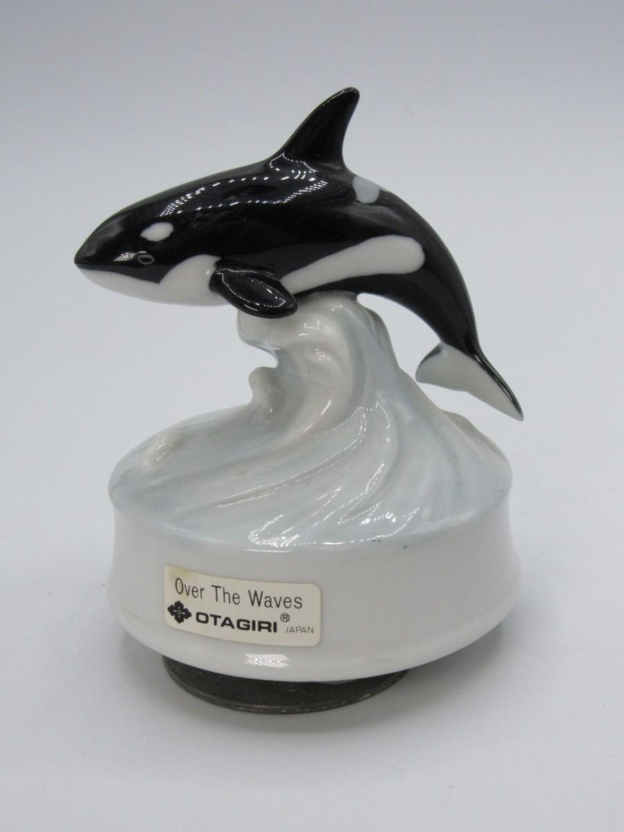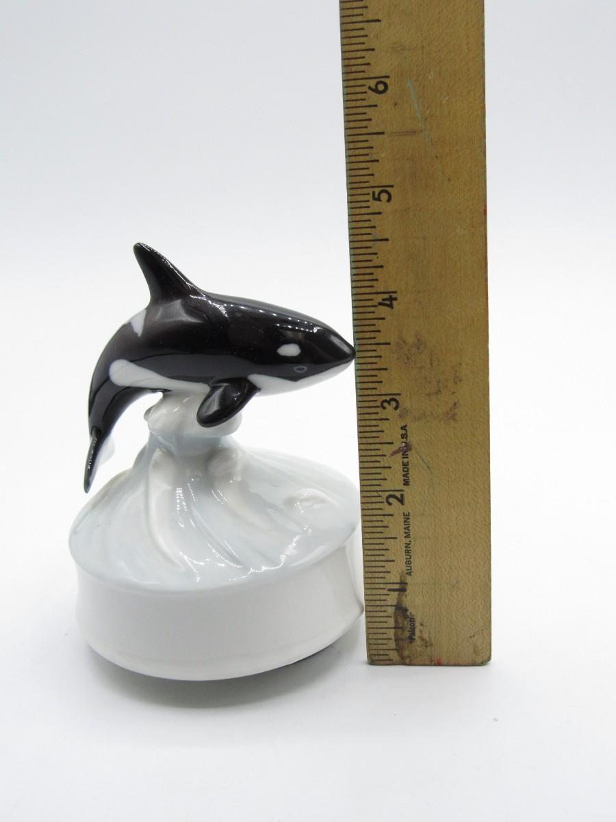 Vintage Orca Whale Music Box By Otagiri "Over The Waves" 1980's Japan Zoo Souvenir