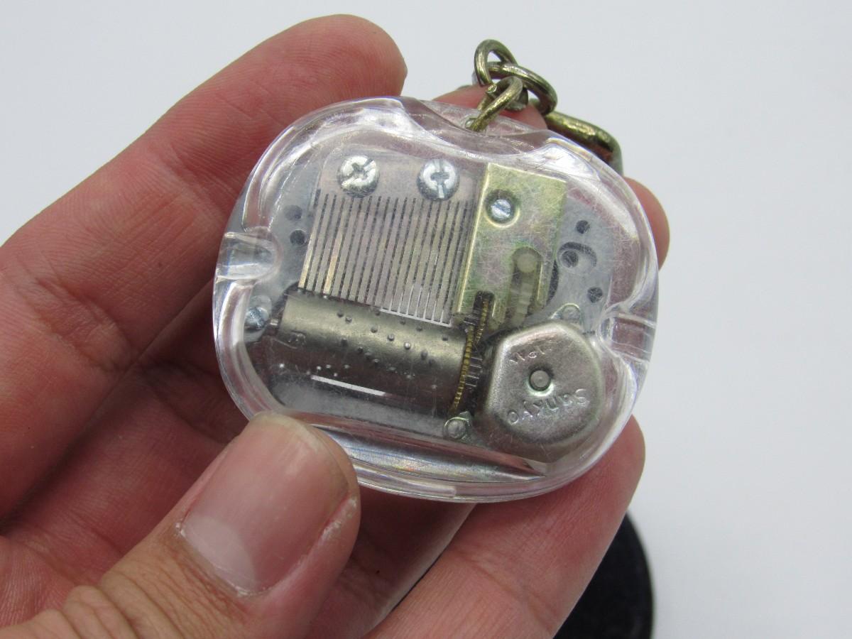 There is no damage to the keychain and is in good collectible condition. The music box works perfectly!