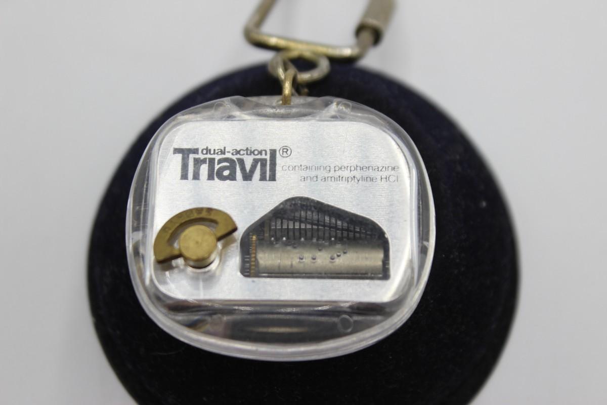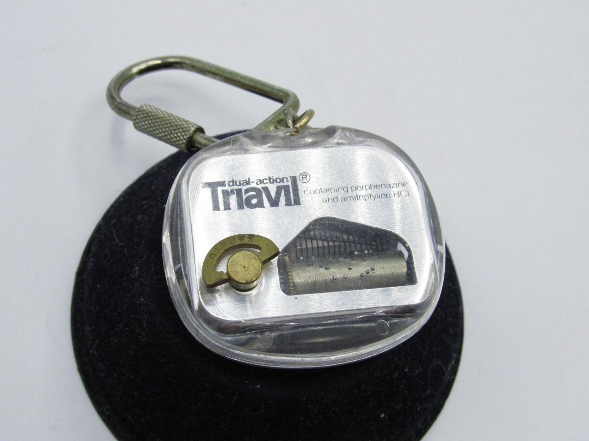 Retro Small Music Box Keychain Advertisement for Anxiety & Depression Medication Curiosity Piece
