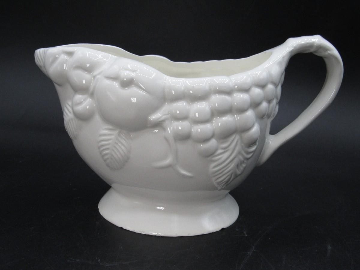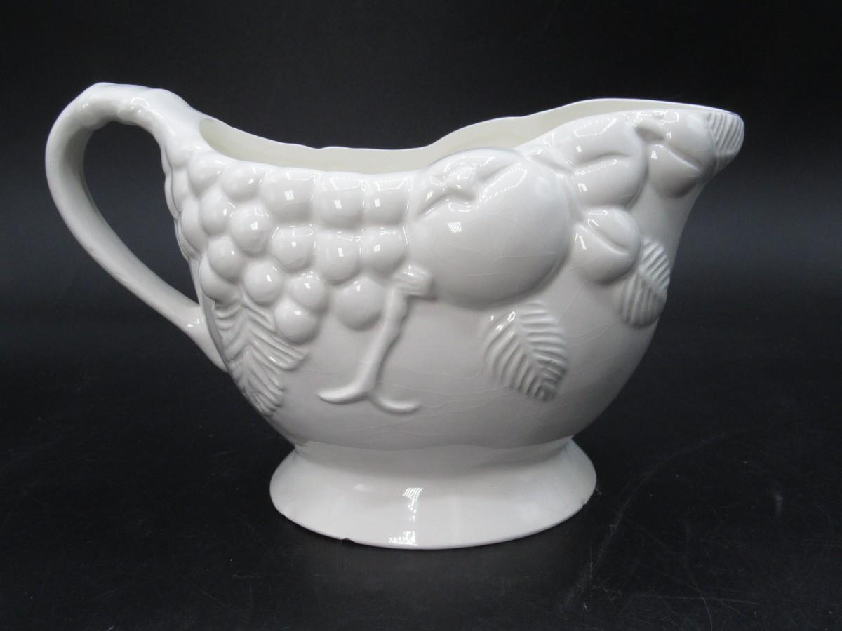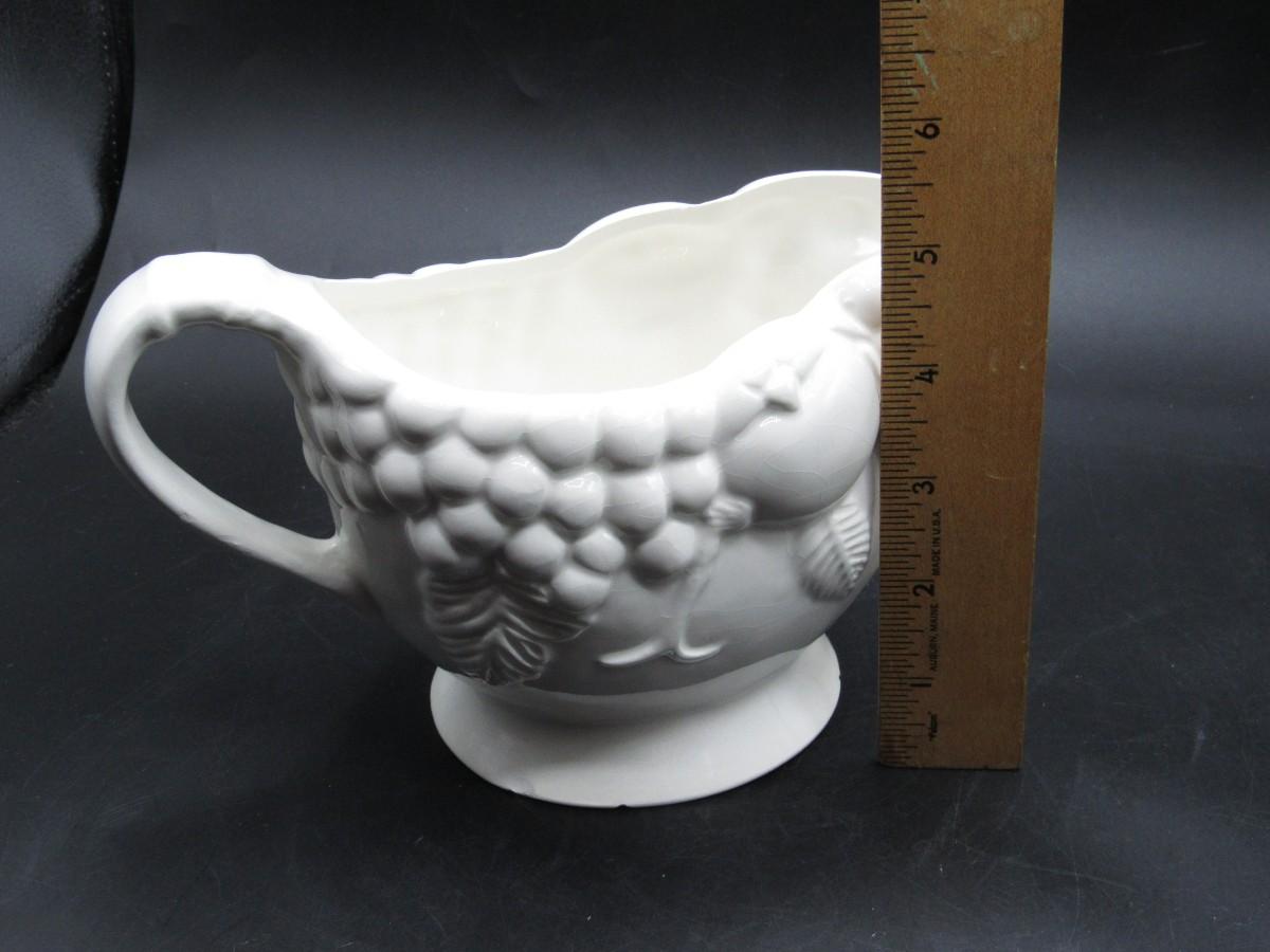 Embossed Classics White Stoneware Grape Fruit Motif Pouring Gravy Boat