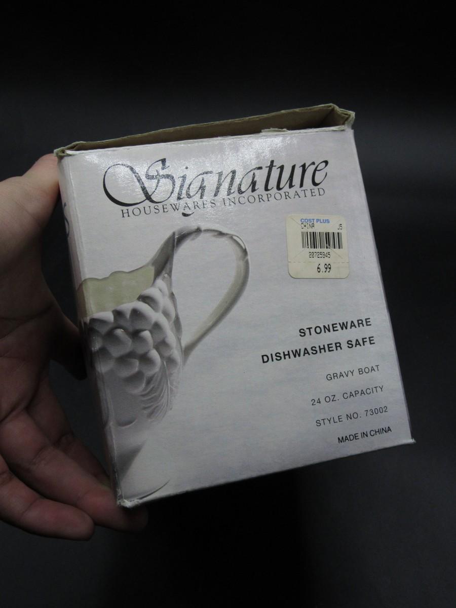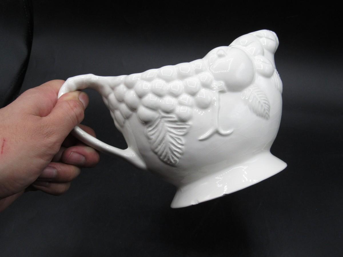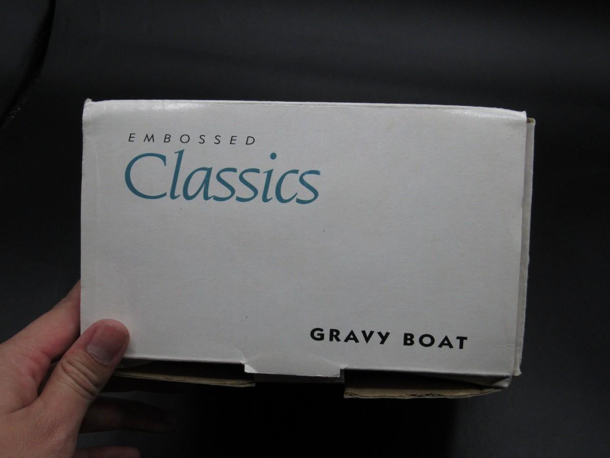 Embossed Classics White Stoneware Grape Fruit Motif Pouring Gravy Boat