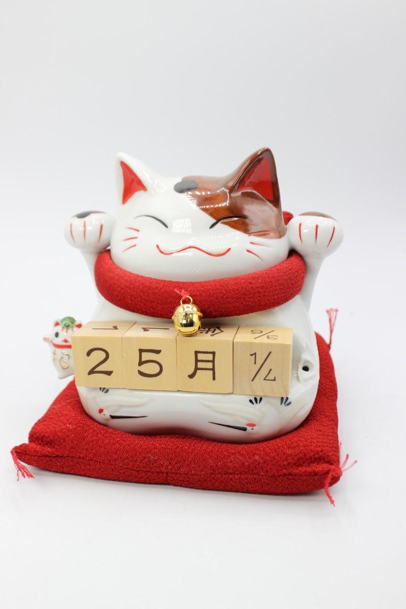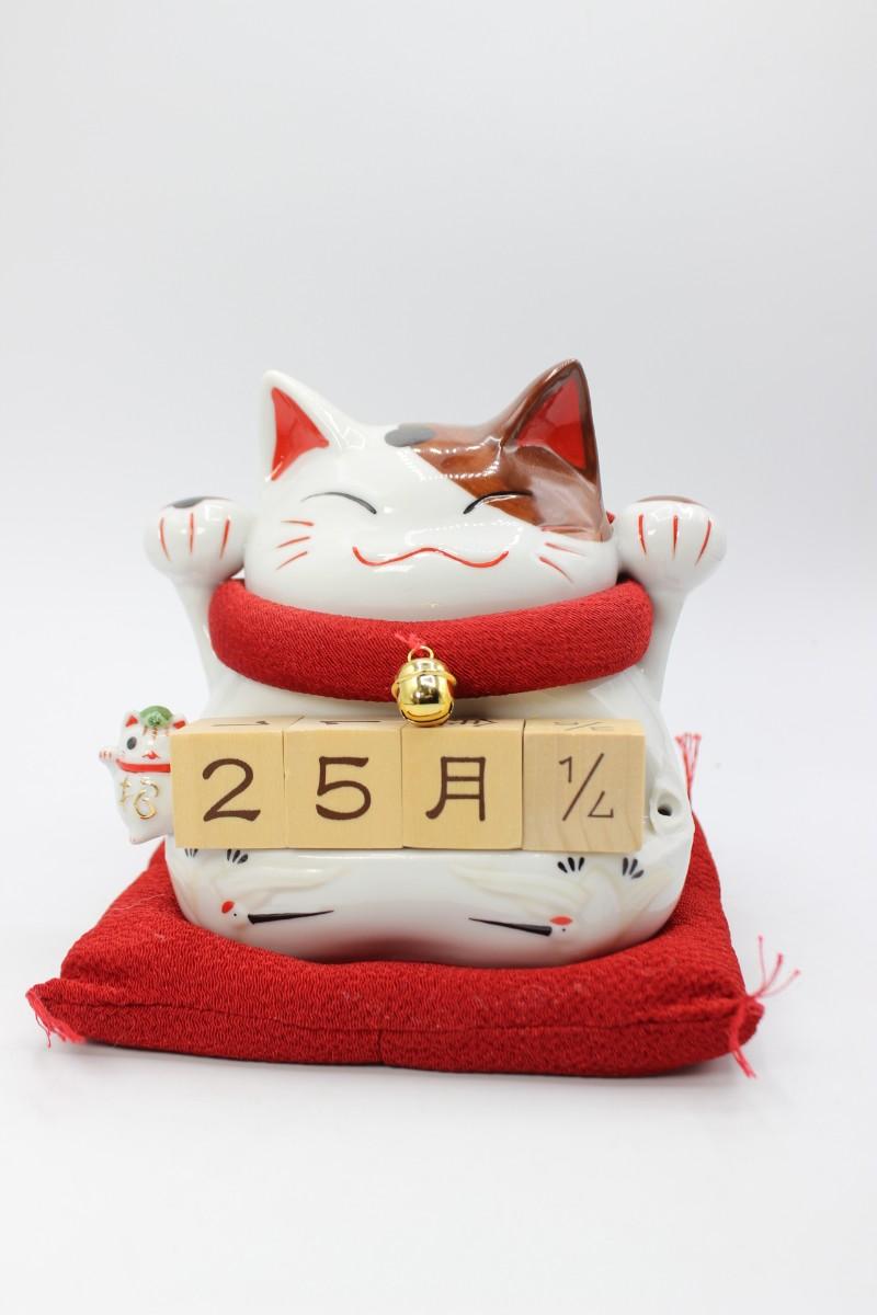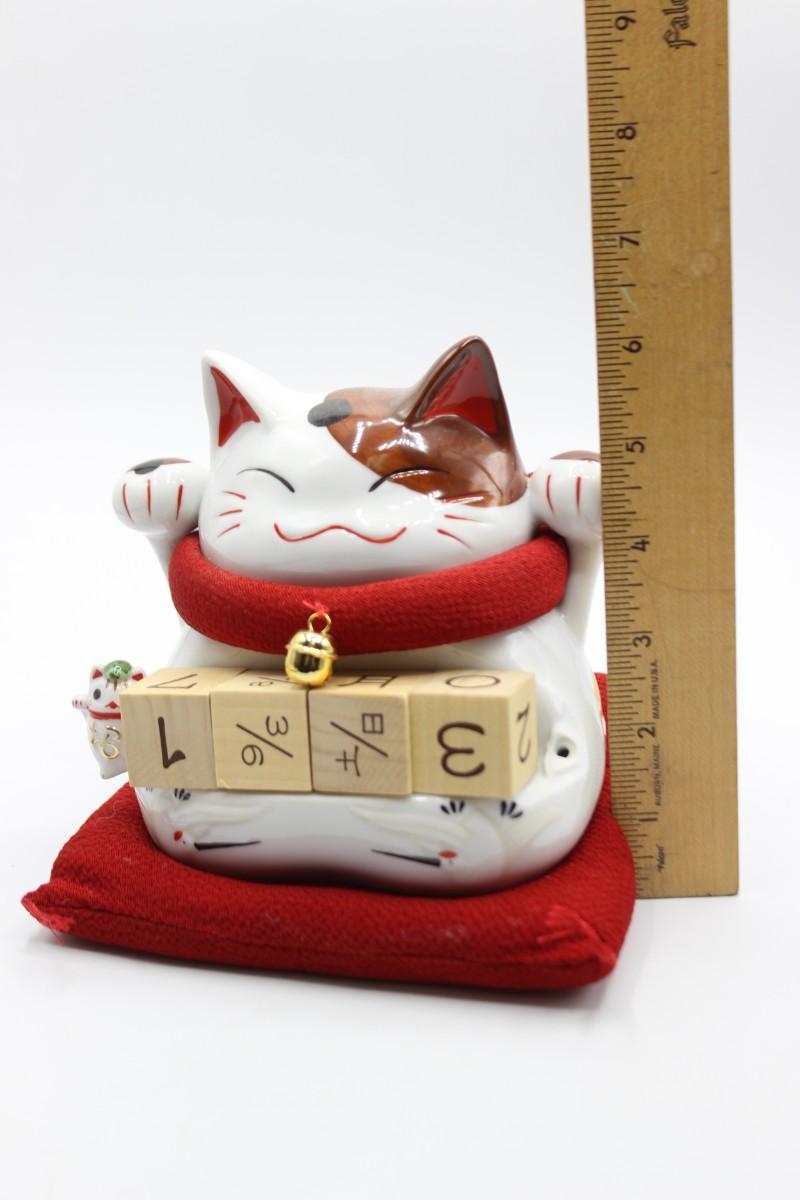 Cute Lucky Cat Wooden Block Date Ceramic Coin Piggy Bank with Box