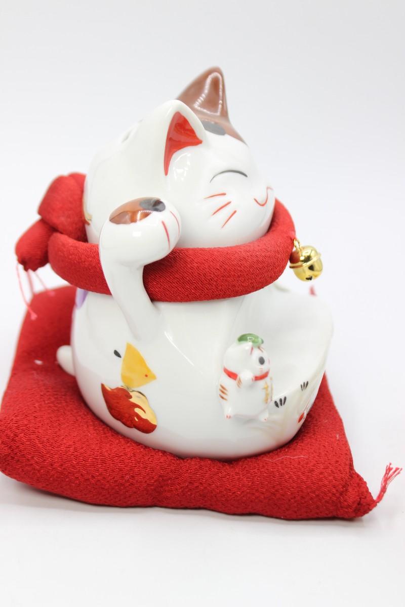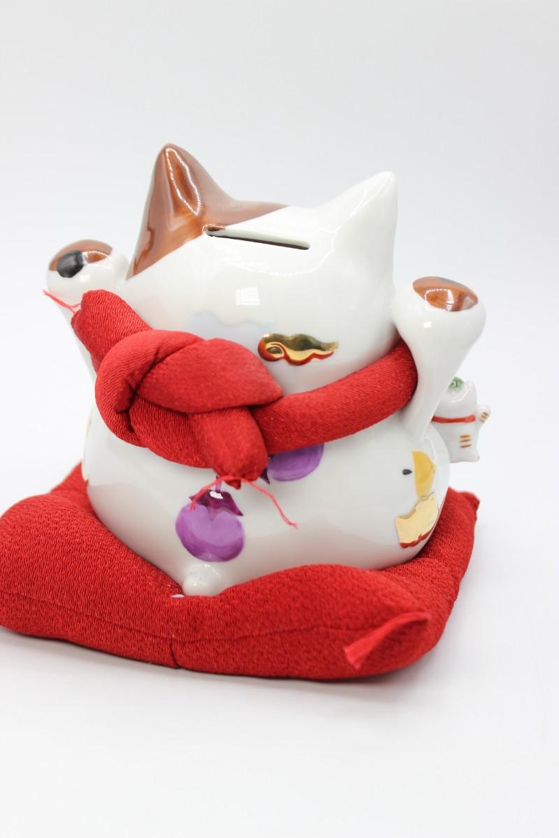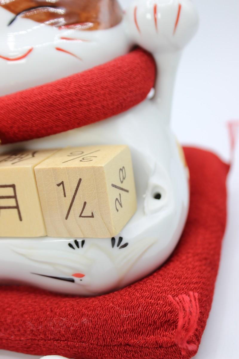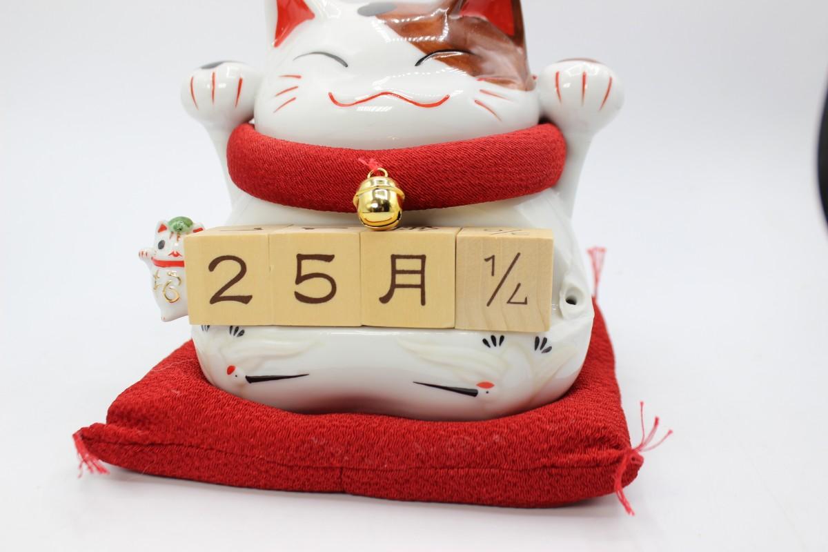 Cute Lucky Cat Wooden Block Date Ceramic Coin Piggy Bank with Box