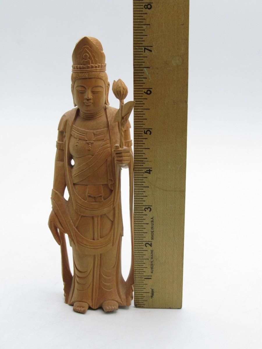 Retro Carved Wood Indian Goddess Buddhaesque Style Figurine Statue