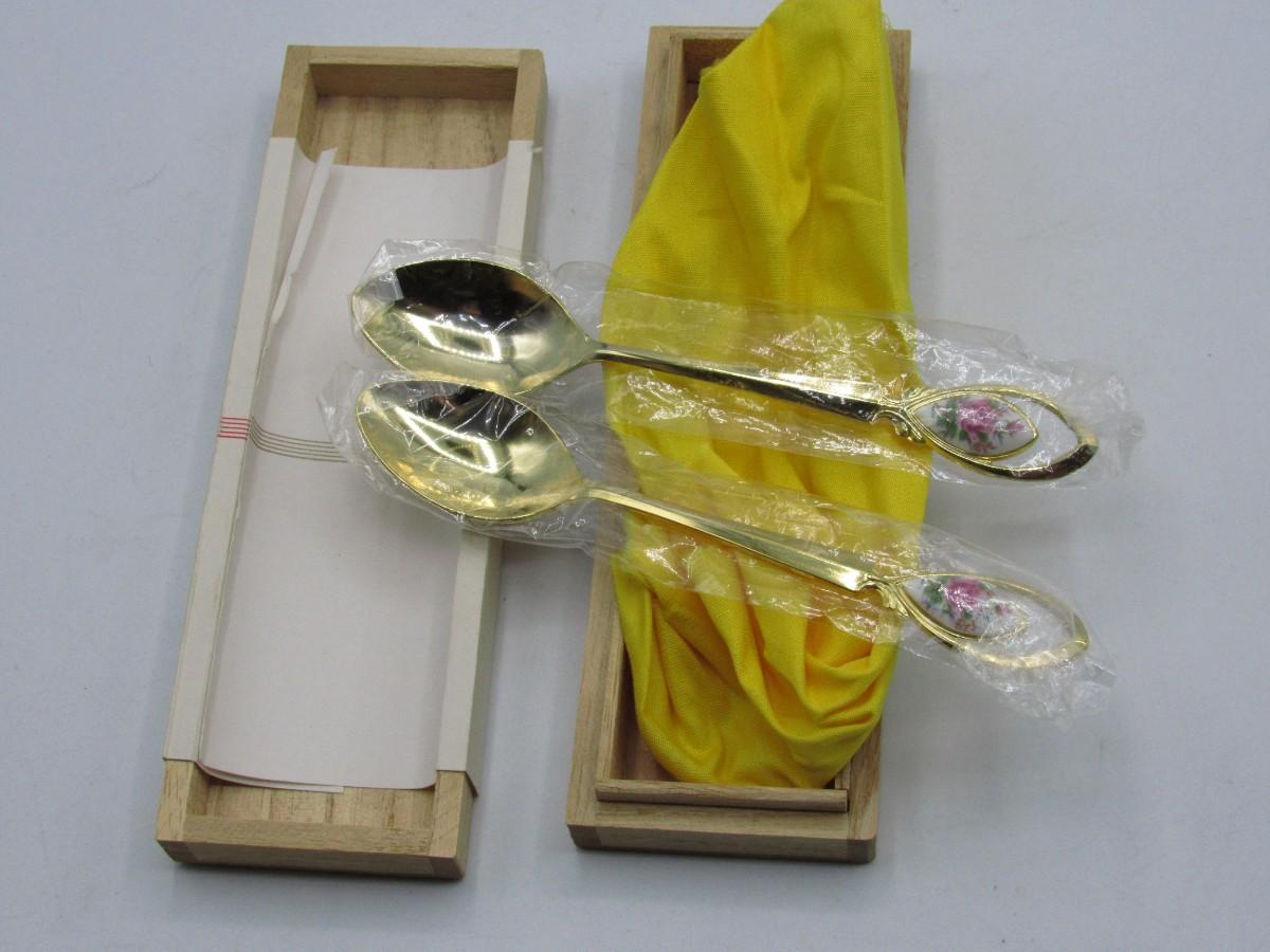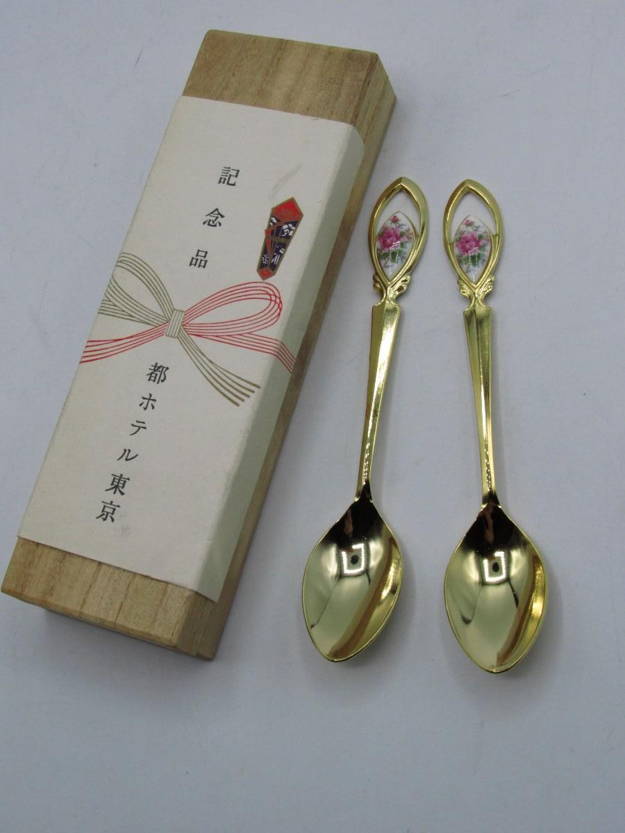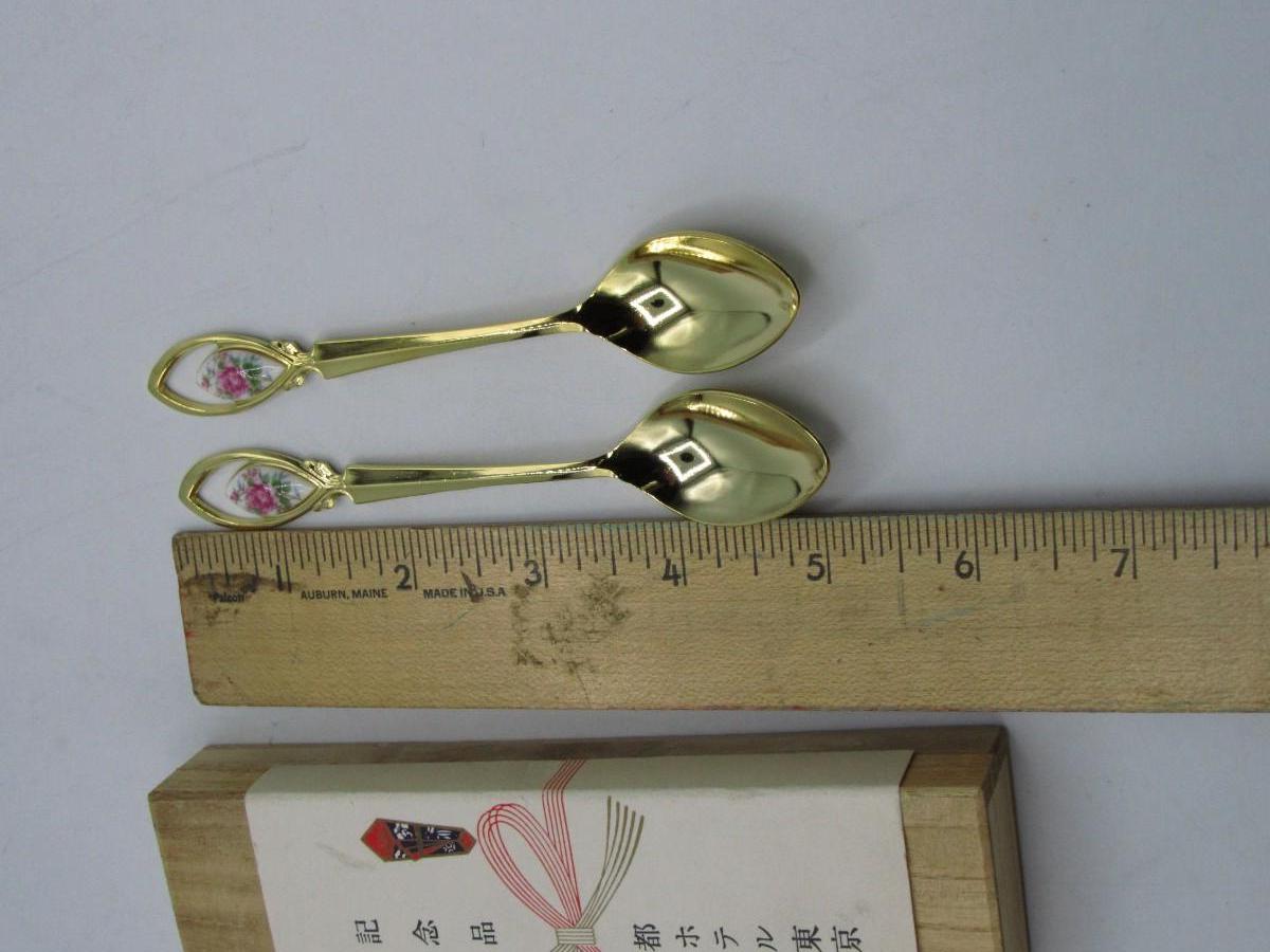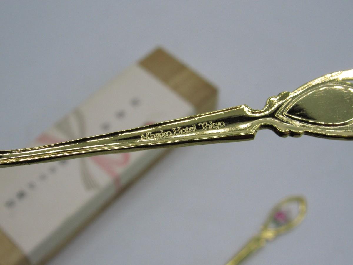 Pair of Retro Miyako Hotel Tokyo Japanese Souvenir Collector Small Gold Tone Spoons