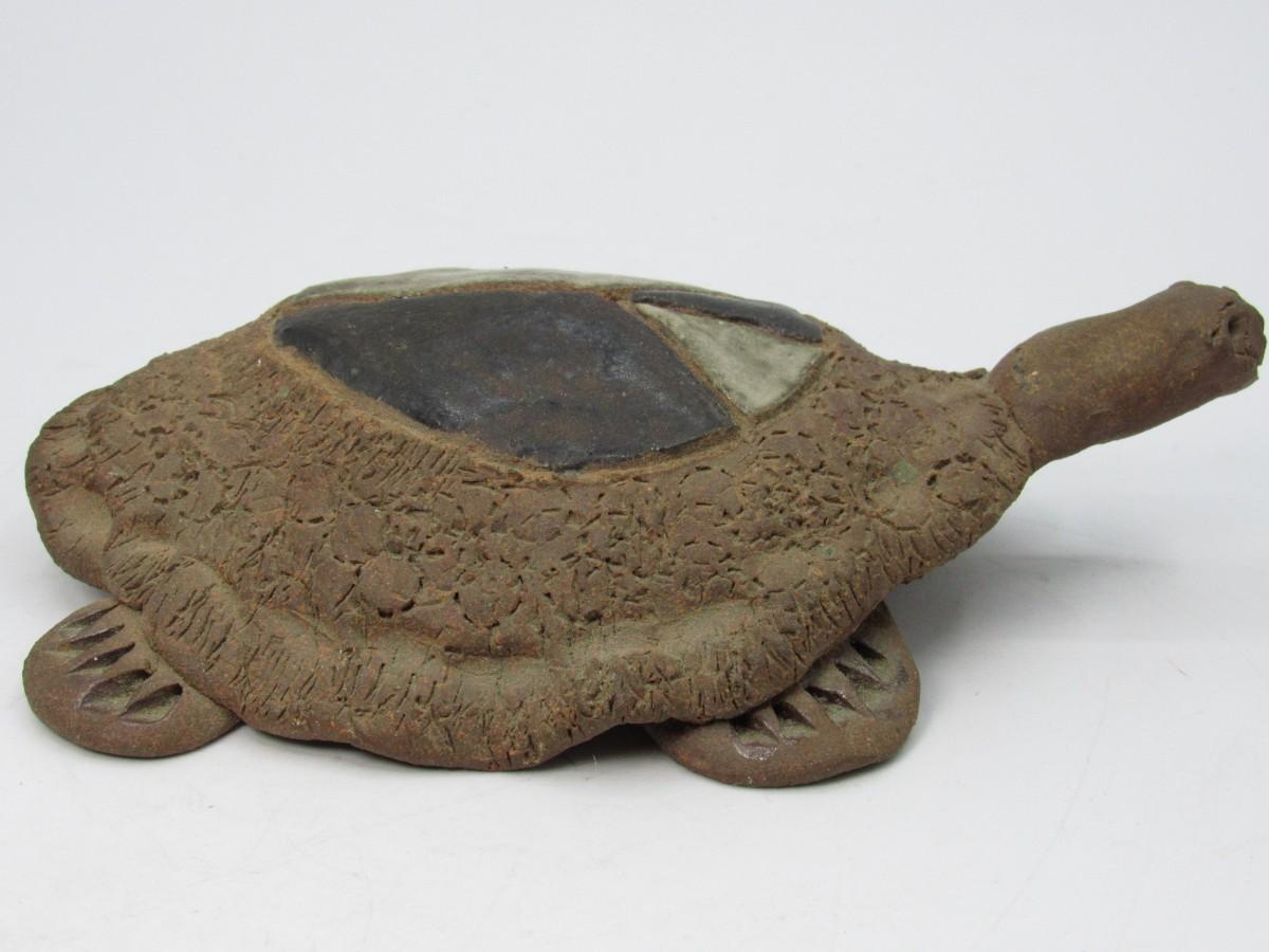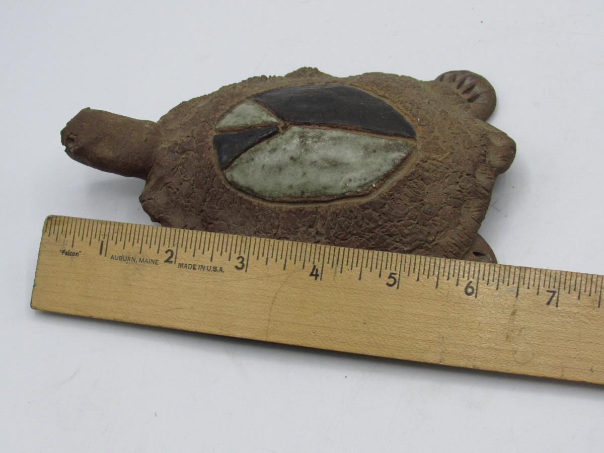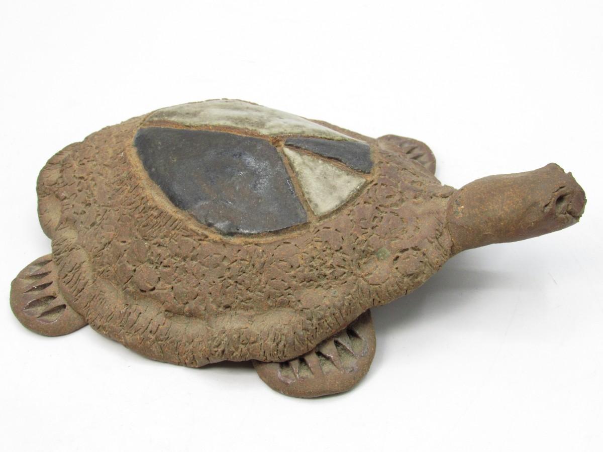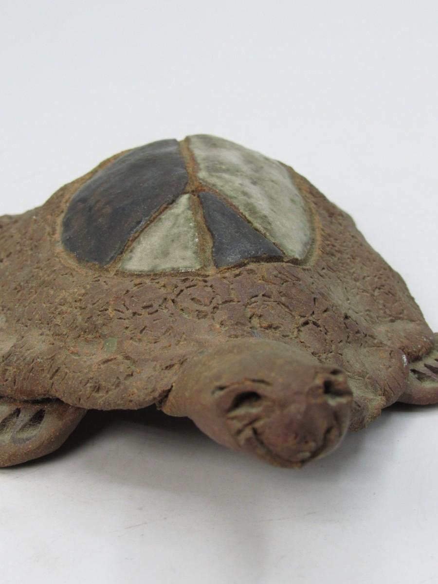 Rustic Handmade Pottery Sea Turtle With Peace Sign Art Figurine