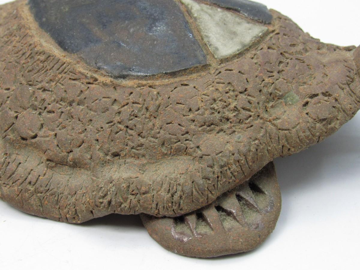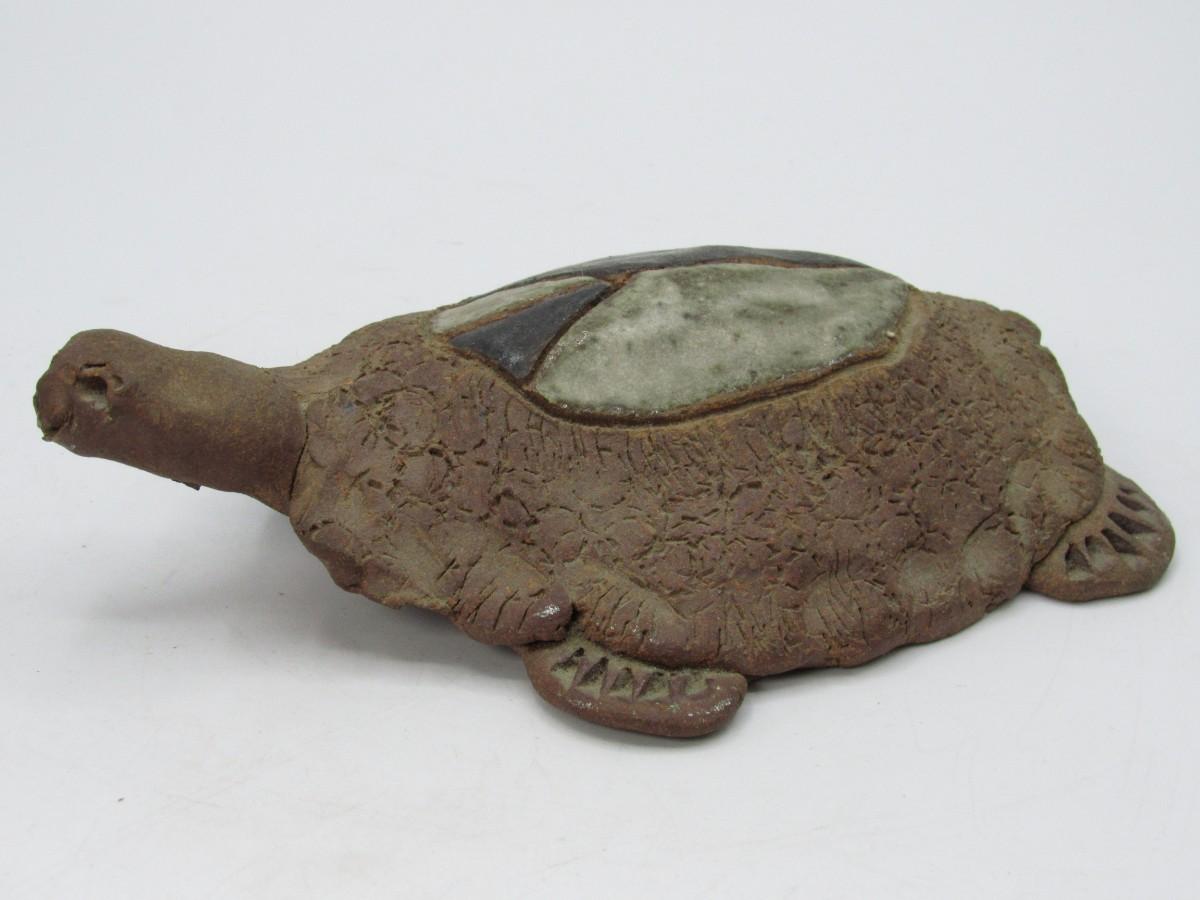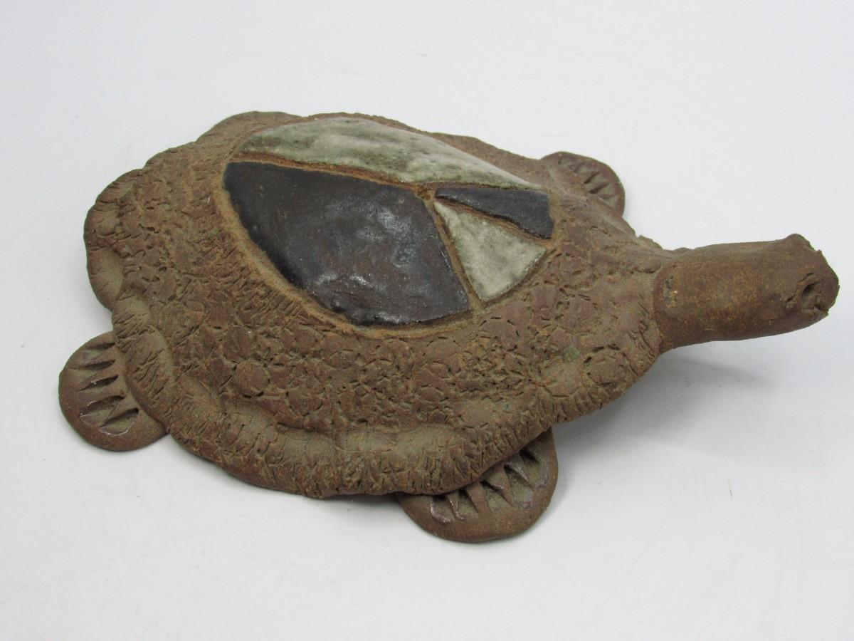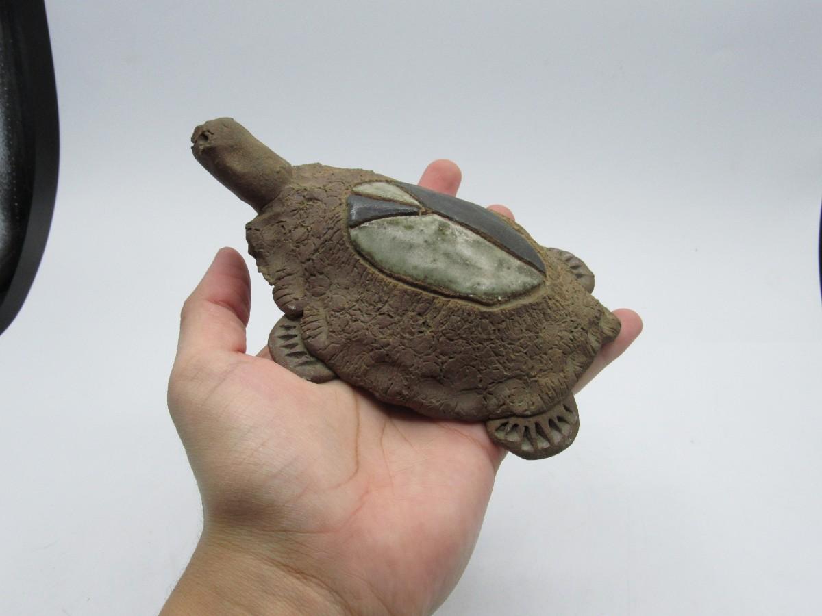 Rustic Handmade Pottery Sea Turtle With Peace Sign Art Figurine