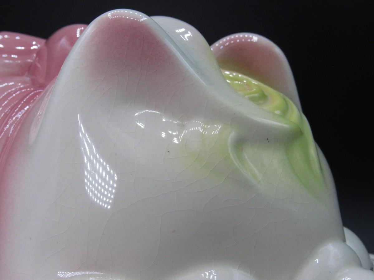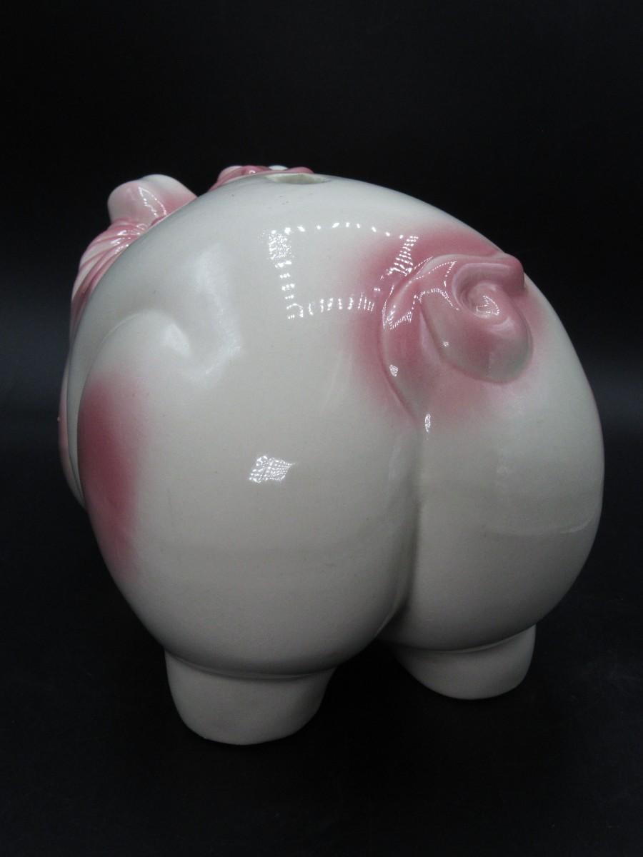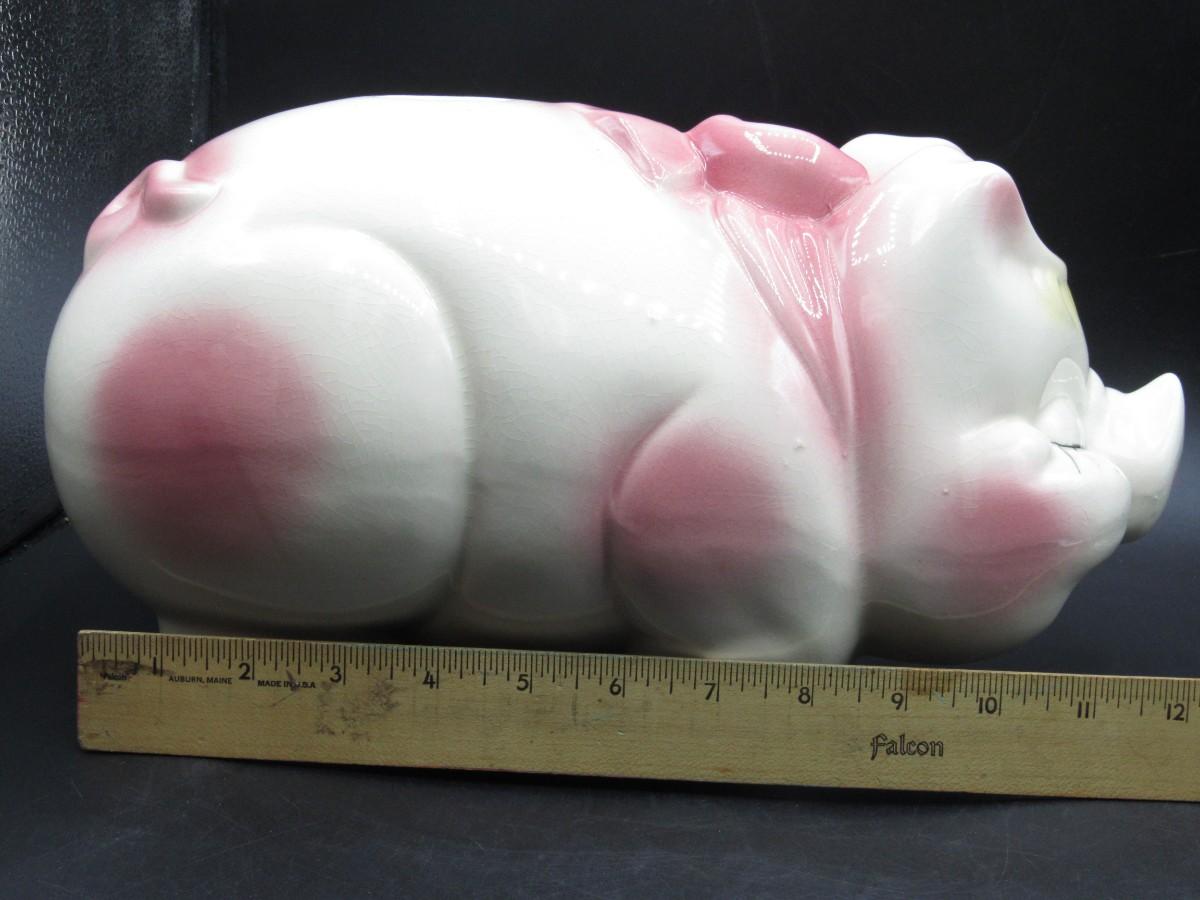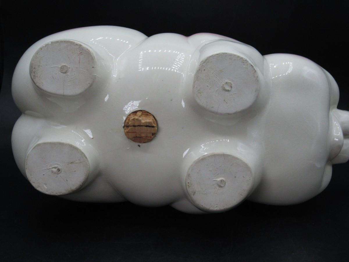 Large Antique Pottery Piggy Bank Pig with Pink Spots