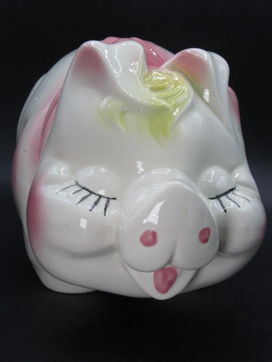 Unknown maker, but sold recently for $95. This piggy is in good vintage condition.