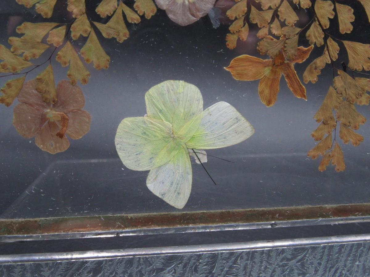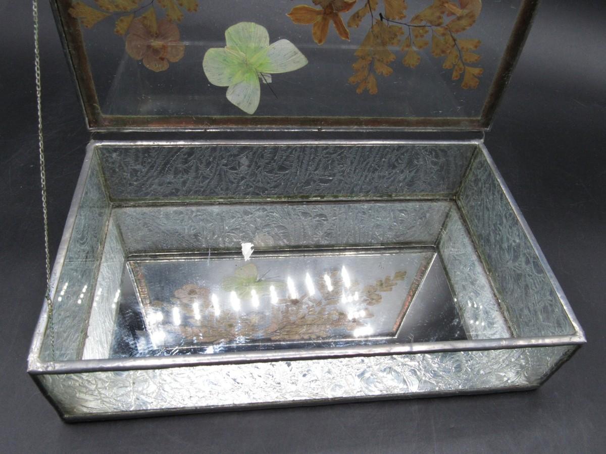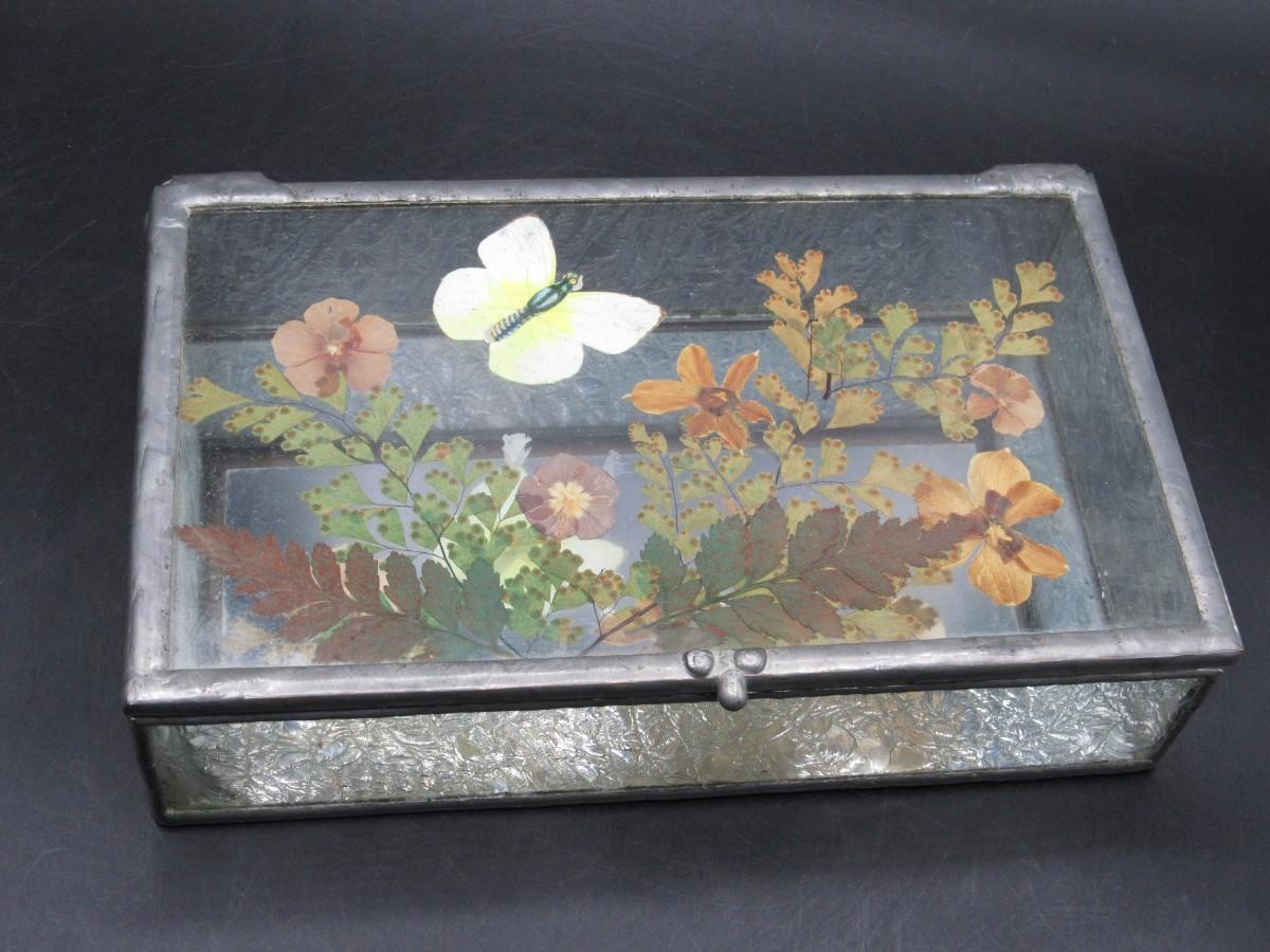 Vintage Clear Mirror Glass Real Pressed Flower Trinket Jewelry Keepsake Box