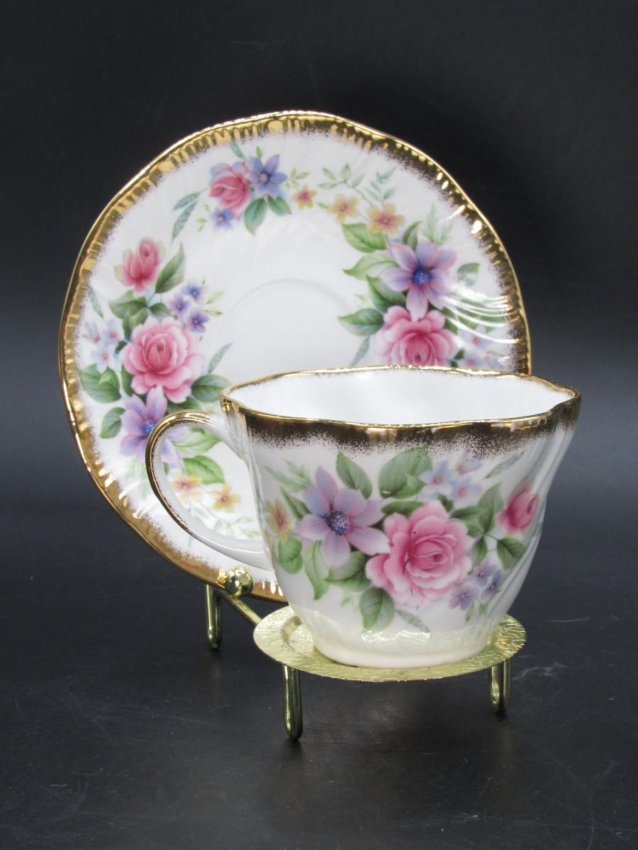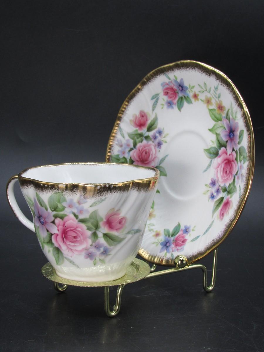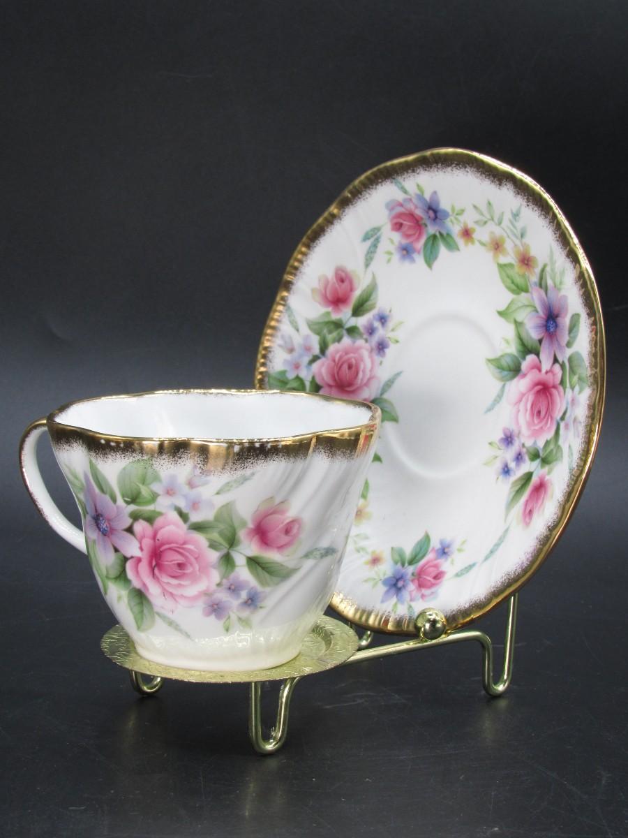 Rosina China Co. Queen's Fine Bone China Teacup and Saucer Pink Flowers