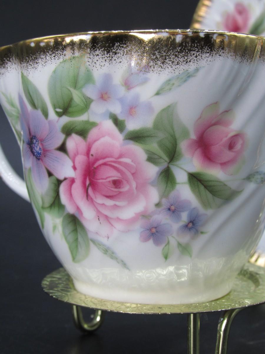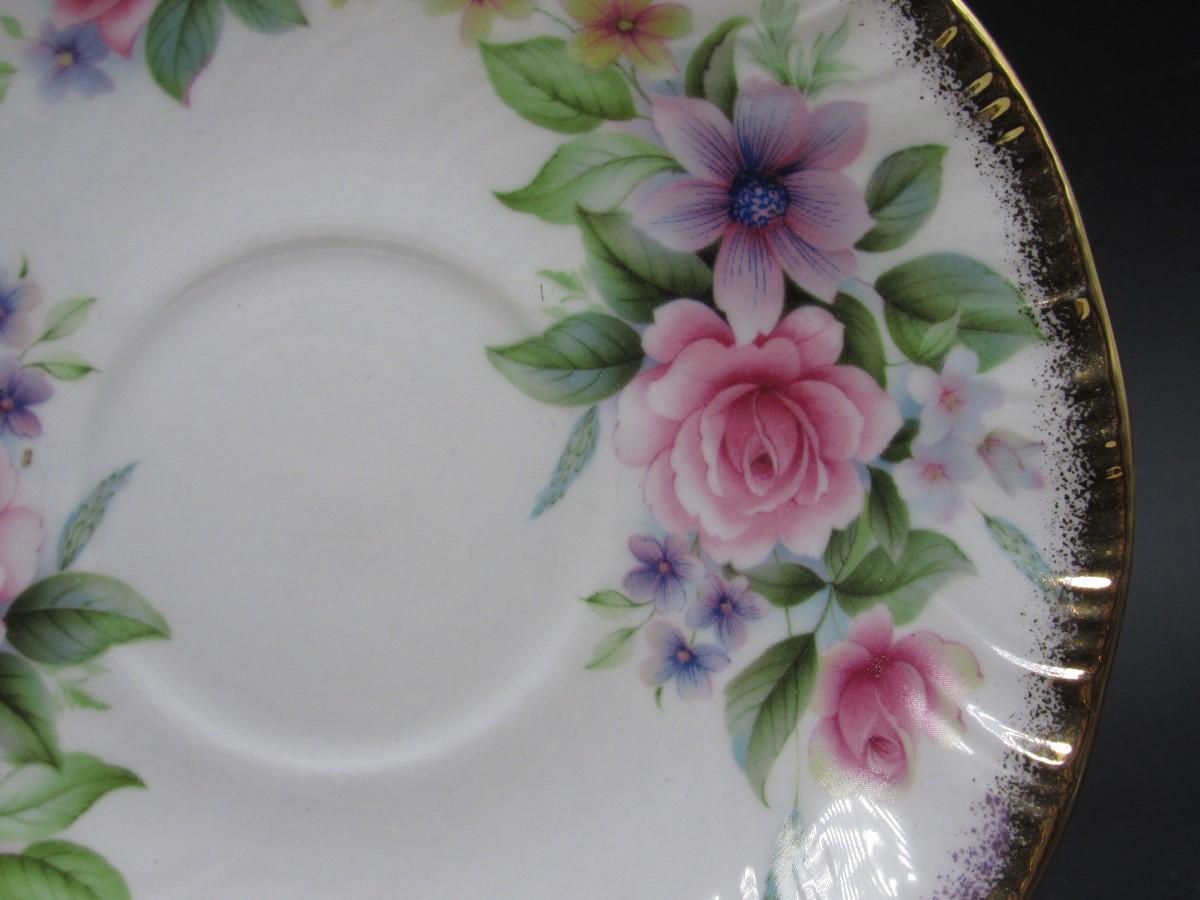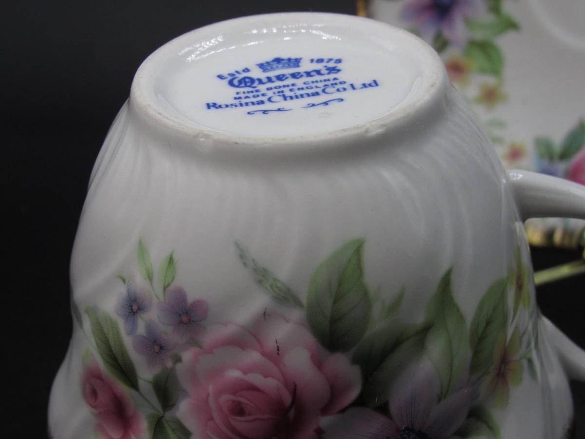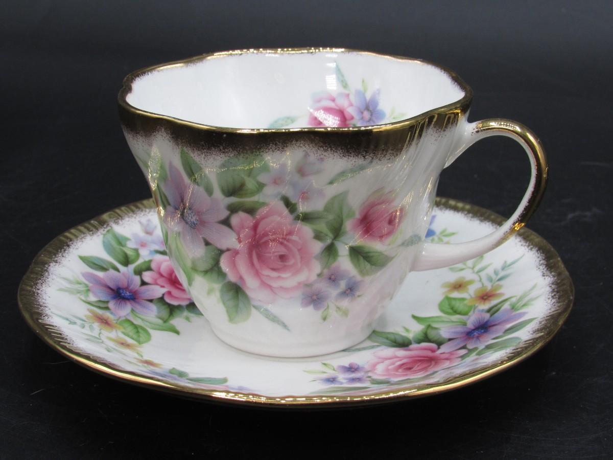 Rosina China Co. Queen's Fine Bone China Teacup and Saucer Pink Flowers
