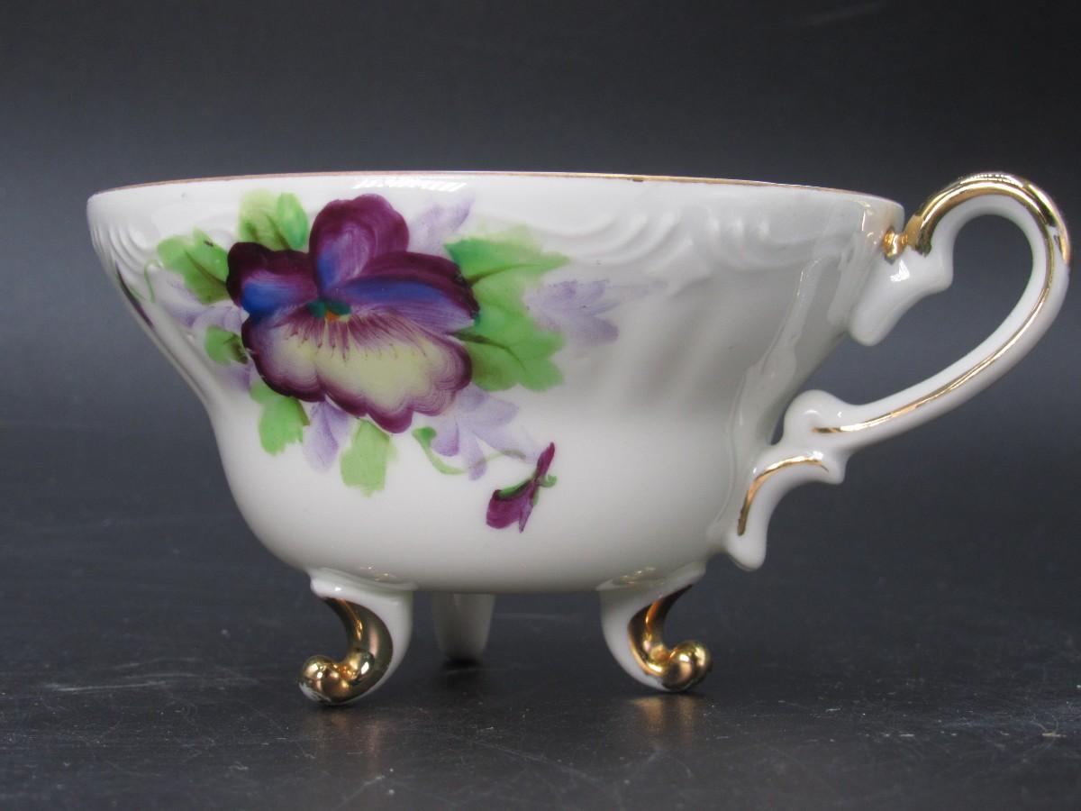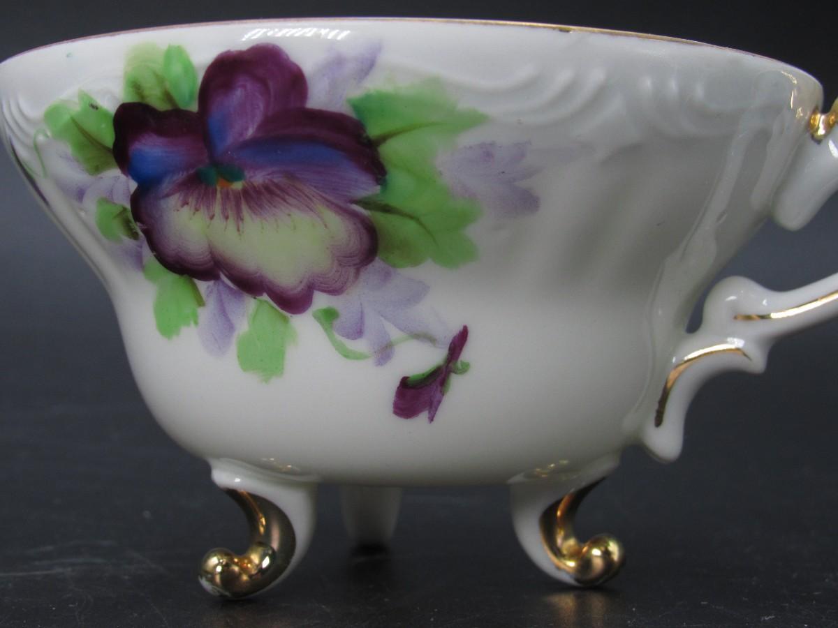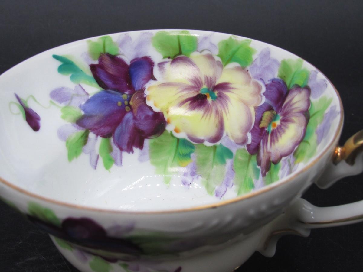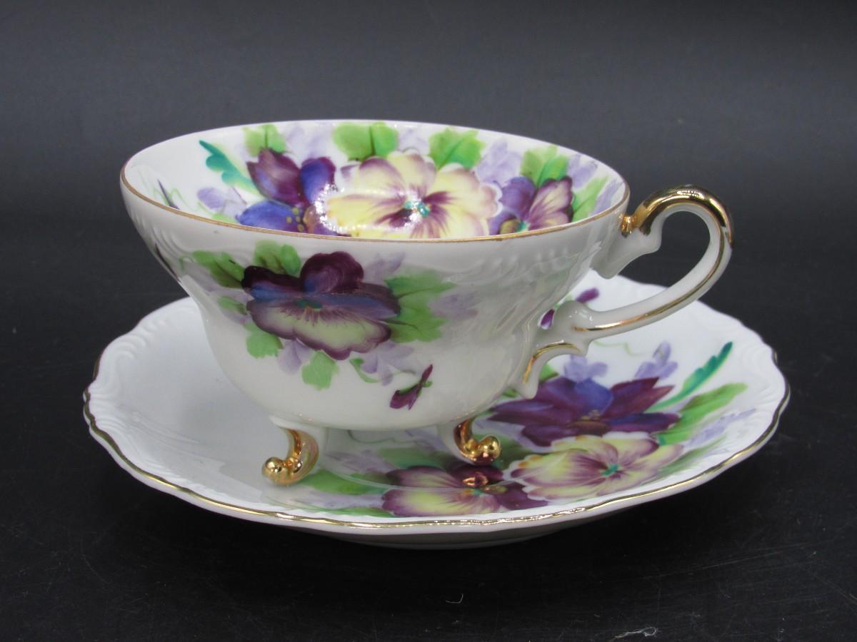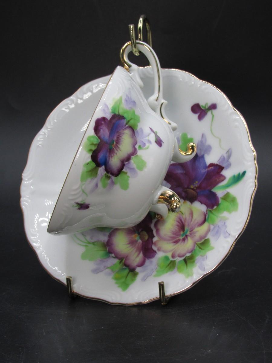 Saji Made in Japan Fancy China Hand Painted Purple Flower Design Teacup & Saucer Set