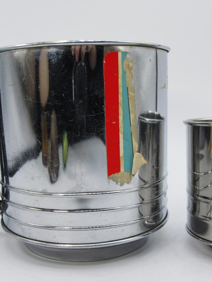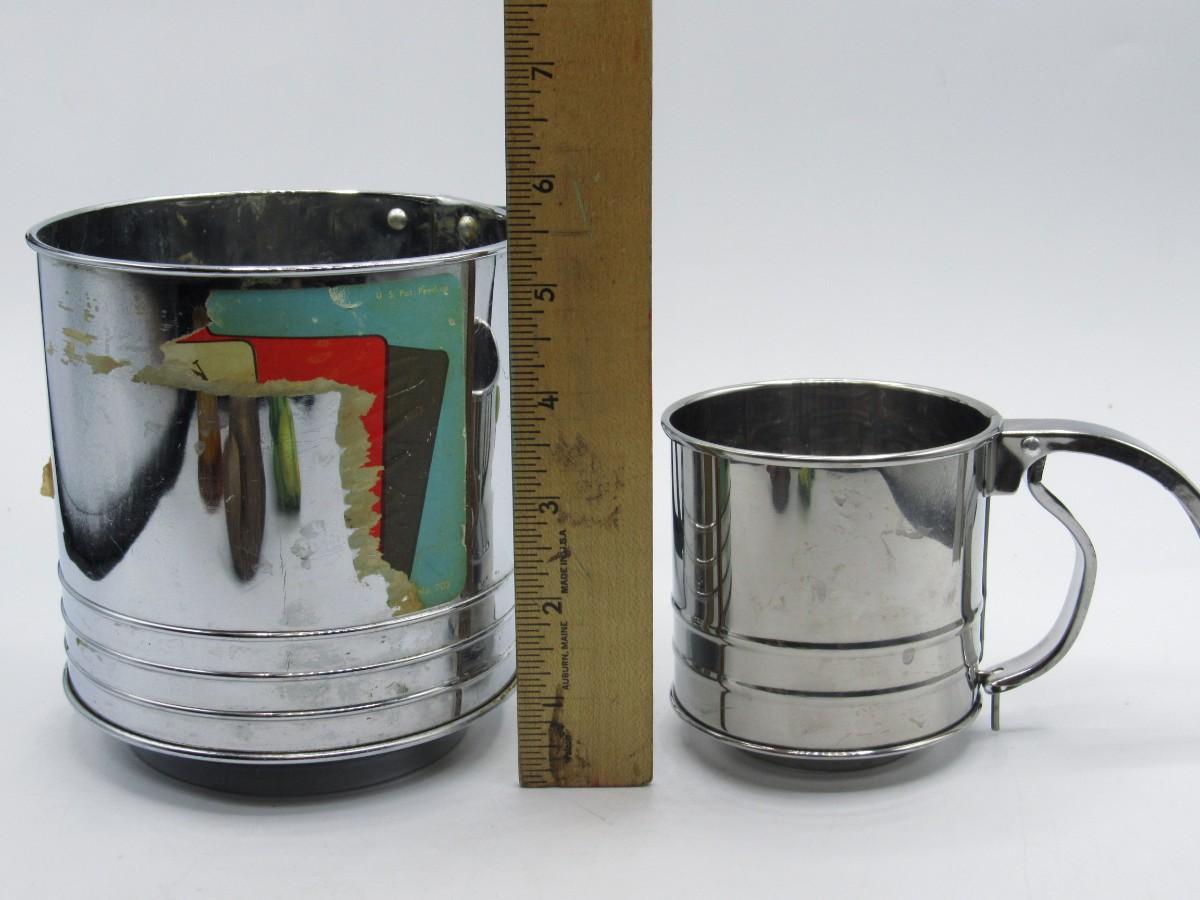 There is no damage to the sifters and is in good useable condition. Check pictures for more details and sizing.