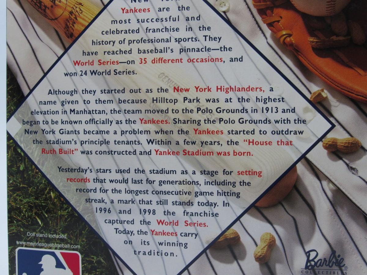 New York Yankees Baseball Barbie Doll in Original Box Mattel 23881