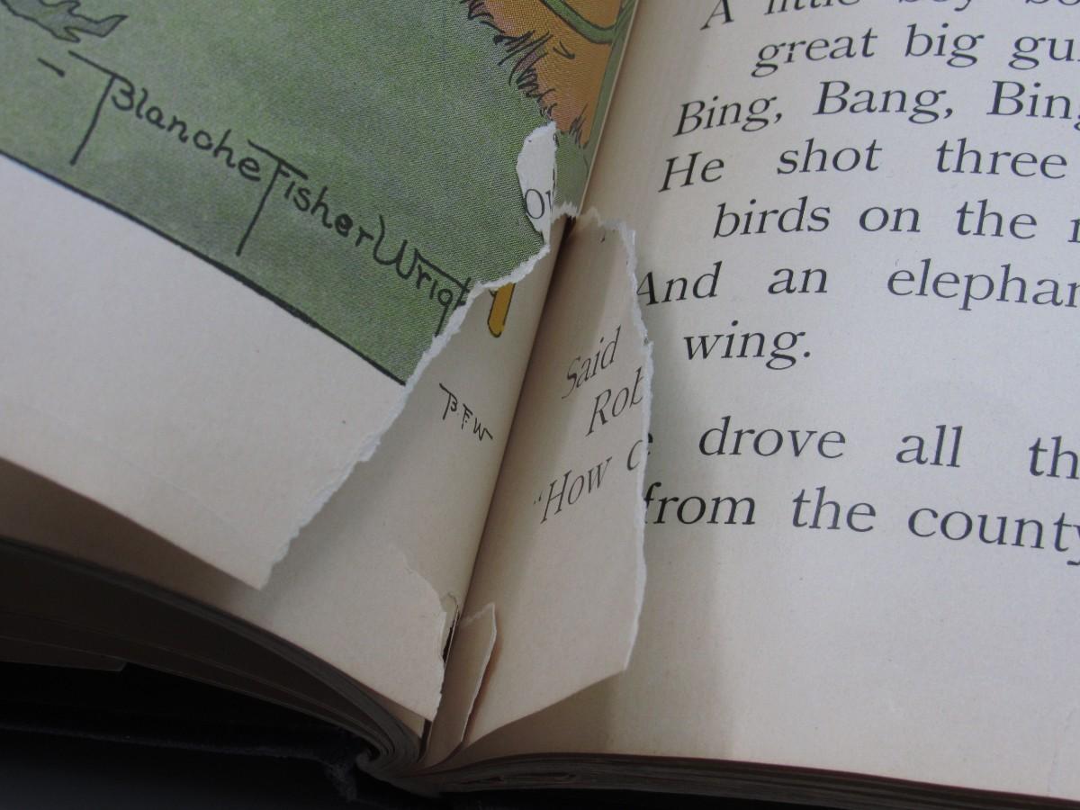 There is ripping to some of the pages in the book and there is light wear to the binding as well, check pictures for more details.