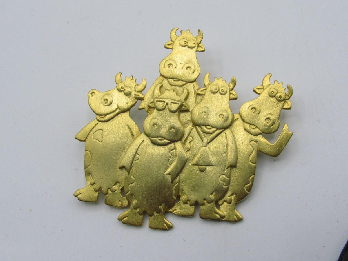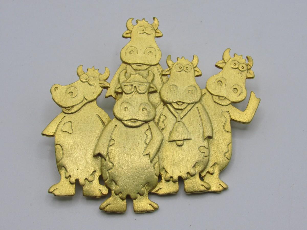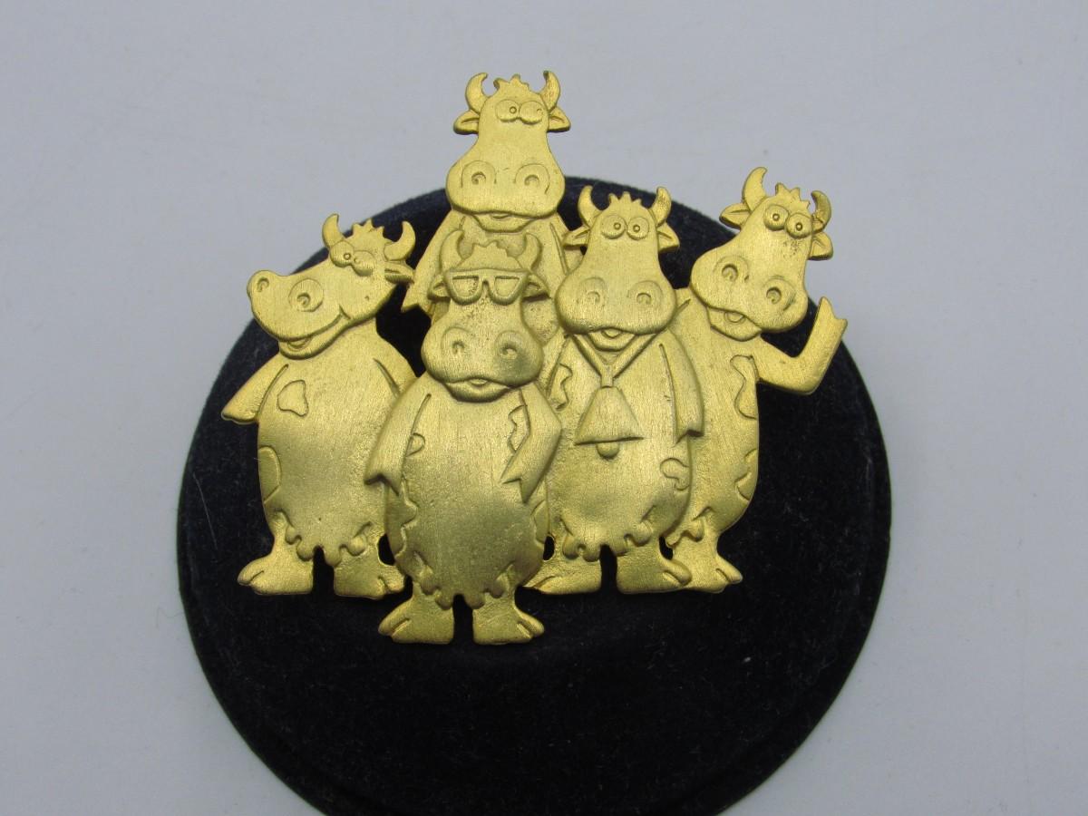 JJ 1988 Noveley Cute Cow Gold Tone Lapel Pin