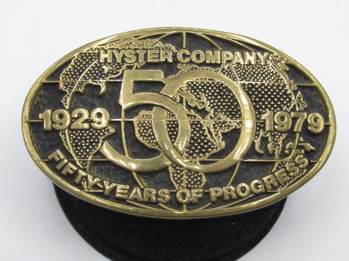 Vintage Hyster Company Fifty Years of Progress Commemorative Belt Buckle